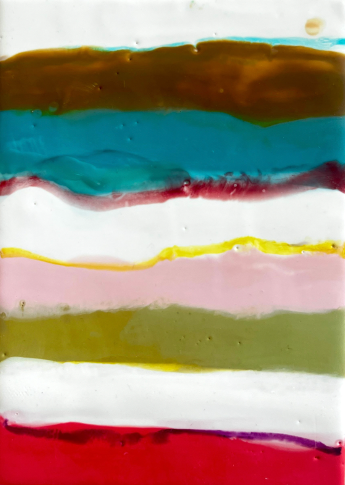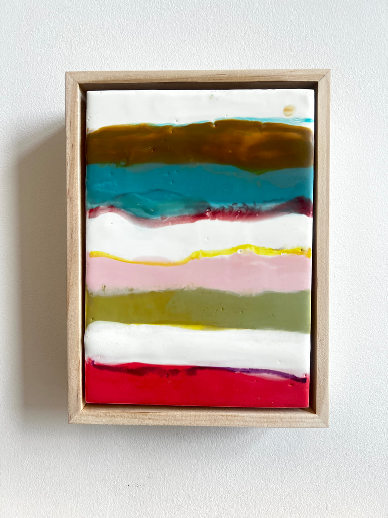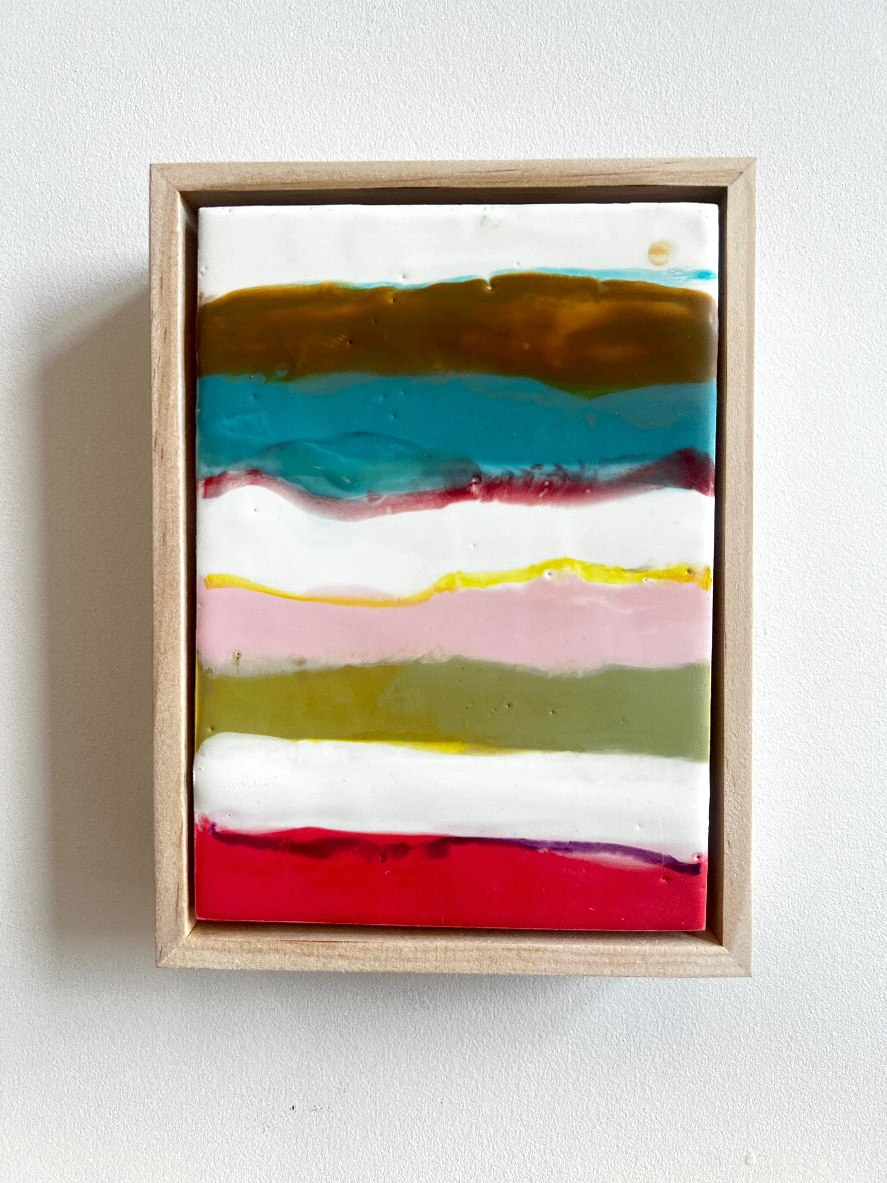 encaustic on wood, in soft gold floater frame