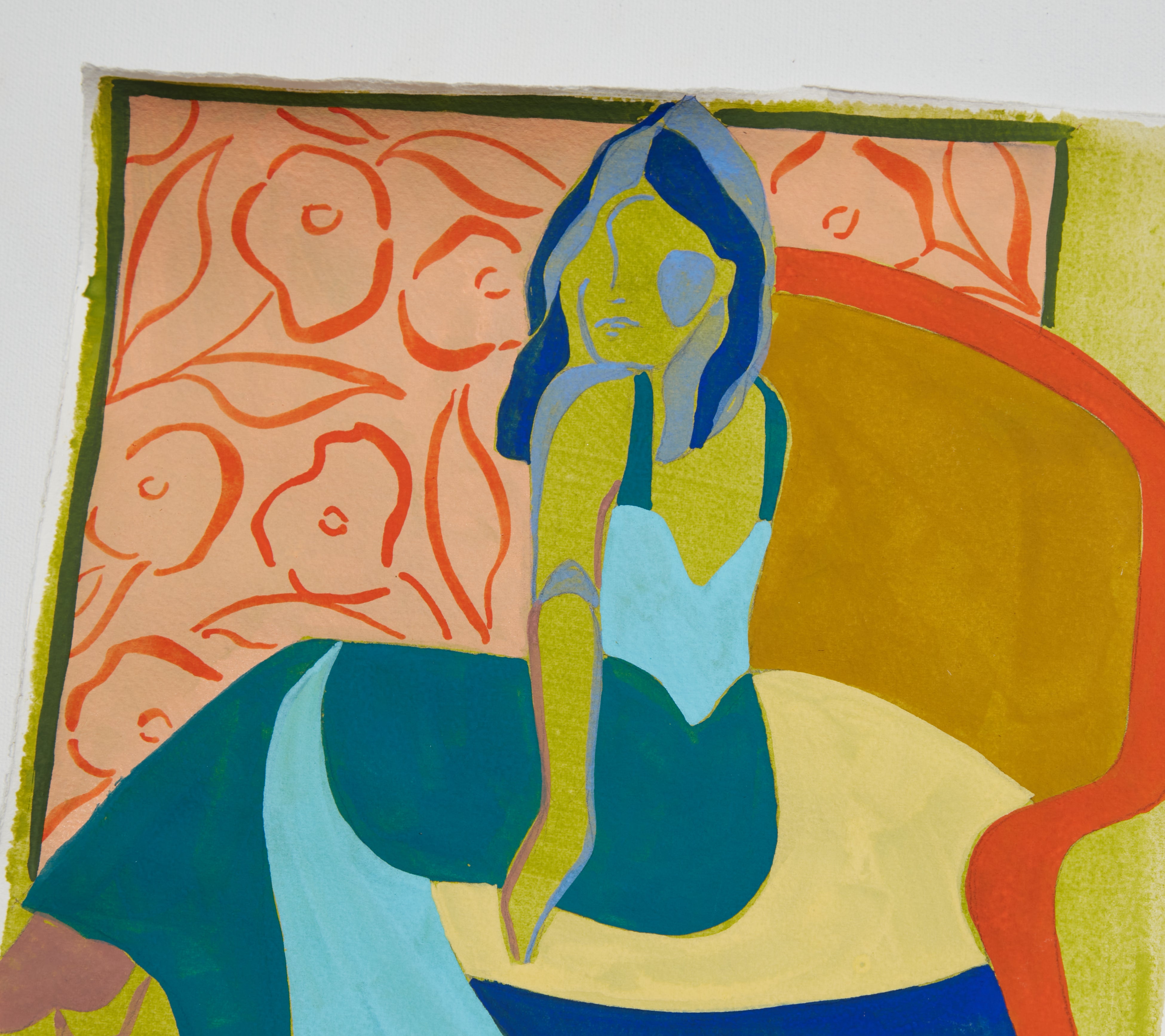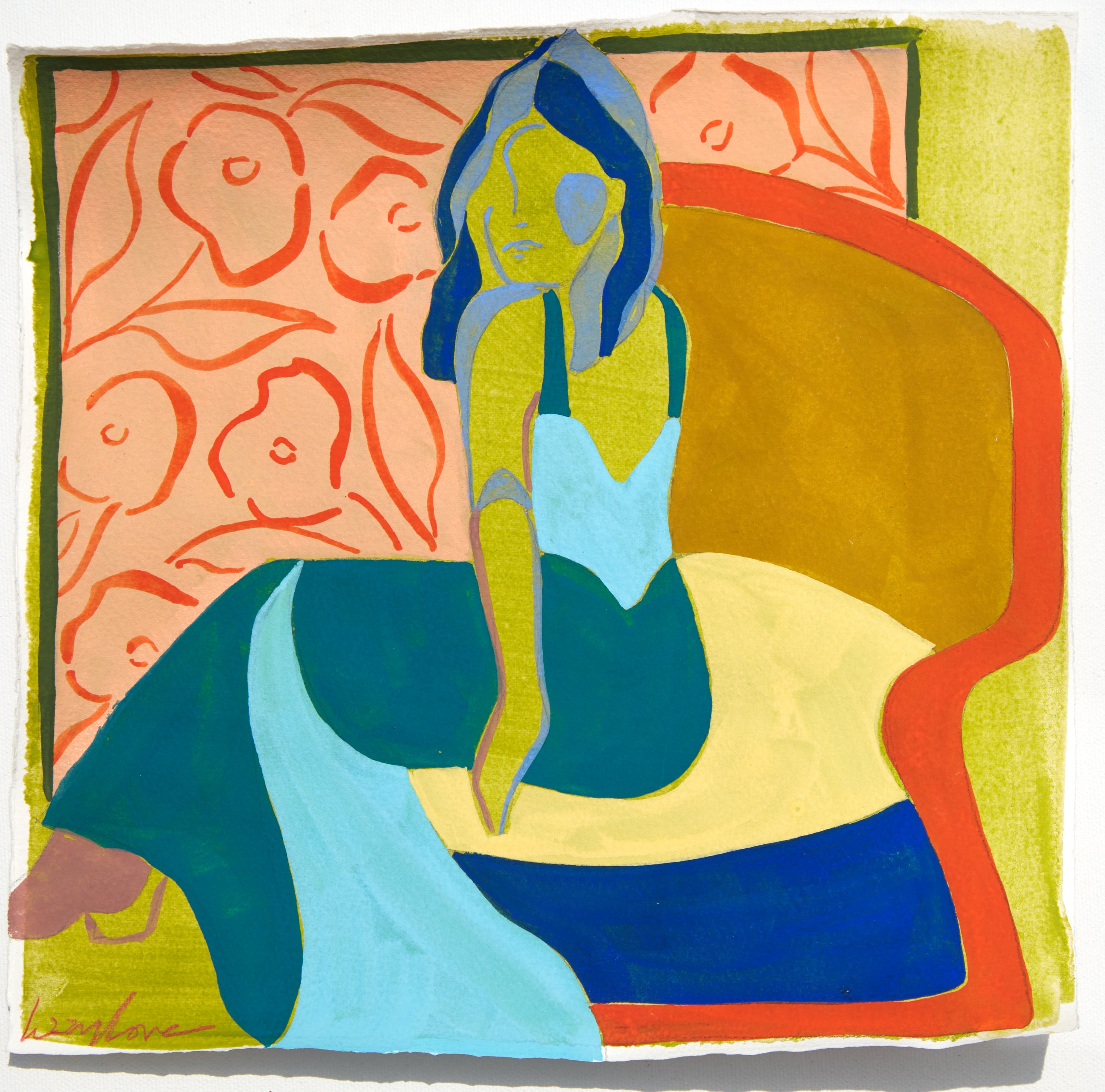 My name is Lizzy Love and I'm an artist in Nashville, TN. I create figurative works on canvas with acrylic paint and papers with watercolor and gouache. This body of work has been a rebirth for me creatively. While I've been painting full time for the last 5 years, I feel like I've really come into myself creatively with my figurative paintings. Born out of a time of uncertainty and lots of questioning, I was pushed to dig deep and get back to basics. I decided to switch gears from painting the landscapes, for which I had been primarily making for years. As an effort to get my creative spark back, I started sketching figures from magazines, a subject I hadn’t explored in a long time. Over many months they slowly evolved into what they have become; starting from detailed and realistic, to more abstract and modernist. I am a big believer that the environment of your home shapes your attitude, and for that reason I love interior design. That love is what led me to start incorporating furniture / interior surroundings / and patterns into the pieces. I pull apart and put back together the lines and shapes of many of my favorite interiors, and place them amongst the figures in a dynamic way. These ladies embody many things - community, respect, femininity, reverence. They are a way to draw attention to what being a woman entails. Many times it means being fierce and strong. Many times it means leaning on and drawing your strength from friends that are like family. While creating each piece, I draw upon the love and reverence I have for all the women in my life; the women who have shaped me, lifted me up when I needed it, laughed with me, and inspired me.