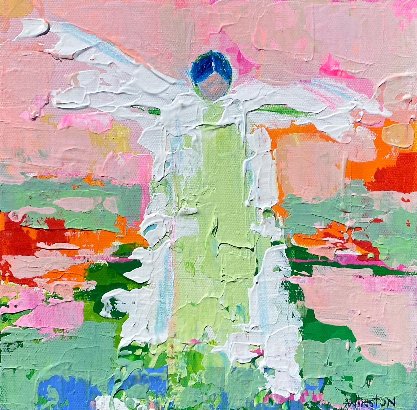 Winston Wiant is originally from Amelia Island, Florida, and full of southern charm. She brings her whimsical and witty delight to each and every painting. Having painted since childhood, she received a Bachelor of Arts degree in Studio Art at Brenau University and has been pursuing her love of art ever since. Her paintings are full of texture, using the palette knife and free brushstrokes to layer the paint, creating one energetic piece after another. She lives in Athens, GA, with her husband and two daughters and paints in her home studio. “Art to me is a form of self-expression. The way I feel that day reflects in my work. My love of bold color and texture is both distinctive and captivating.”