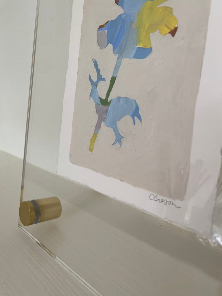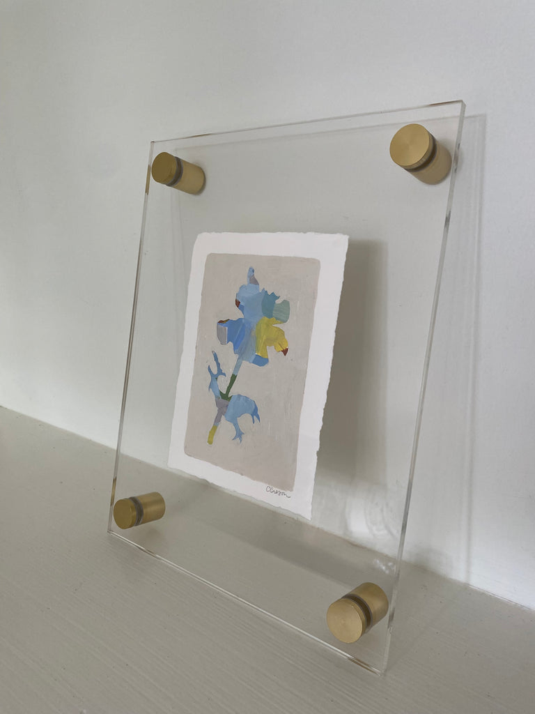 acrylic on paper, in acrylic and brass frame