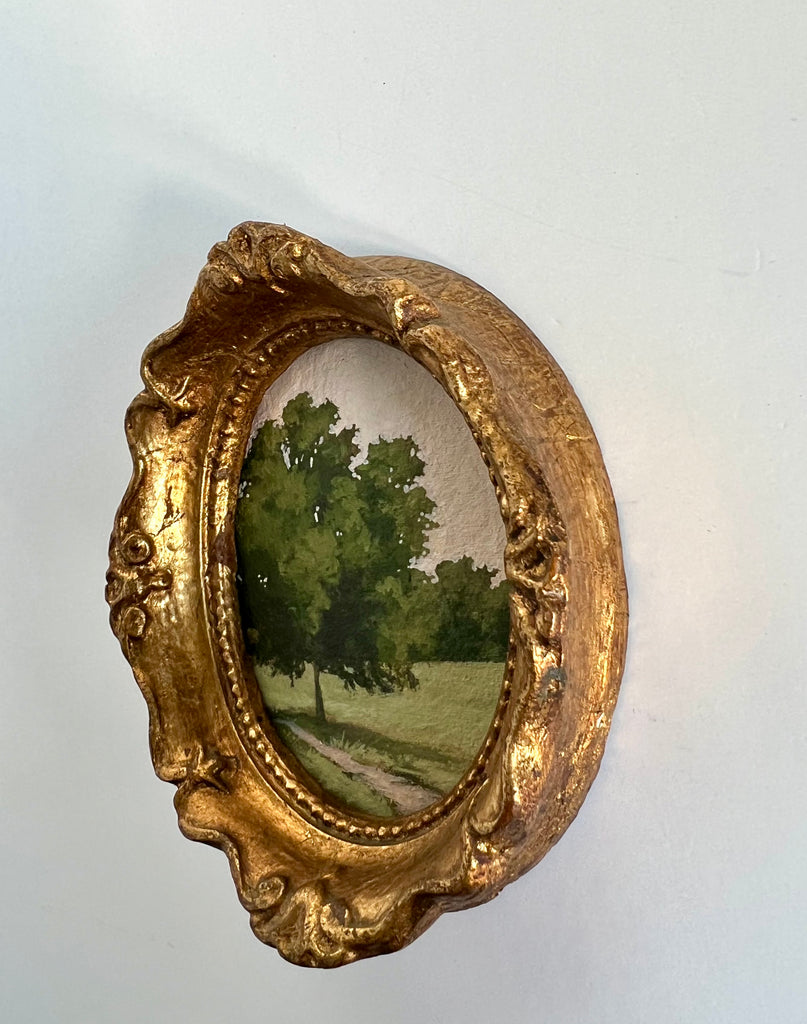 Jennifer was born in Jackson MS and moved to Nashville as a child. She enjoyed art as a child and painted with oils a bit as a teen, but ultimately went to MTSU to earn a degree in nutrition. Jennifer didn’t truly begin painting again until her children were in school full time, and started simply by painting pieces she wanted to hang in her own home. Discovering a love for vintage and antique frames (not to mention looking for these frames both in-person and online), she began pairing them with her favorite paintings. She paints primarily in acrylics on handmade paper. “I love the juxtaposition of a vintage/antique frame with the freshness of a modern landscape on textured handmade paper; the marriage of that tradition and history combined with the fresh clean colors in my pieces brings me joy.” She finds inspiration in clouds and trees and the hunt for the perfect vintage frame. Jennifer lives in Nashville with her husband and two boys.