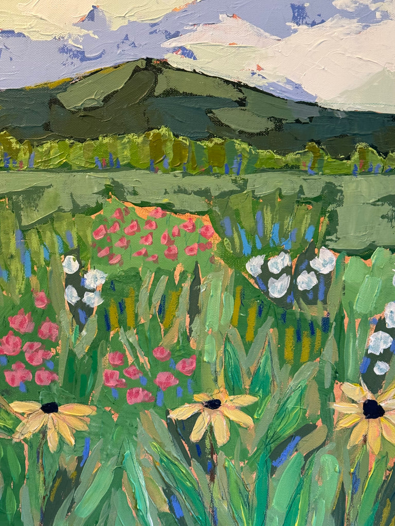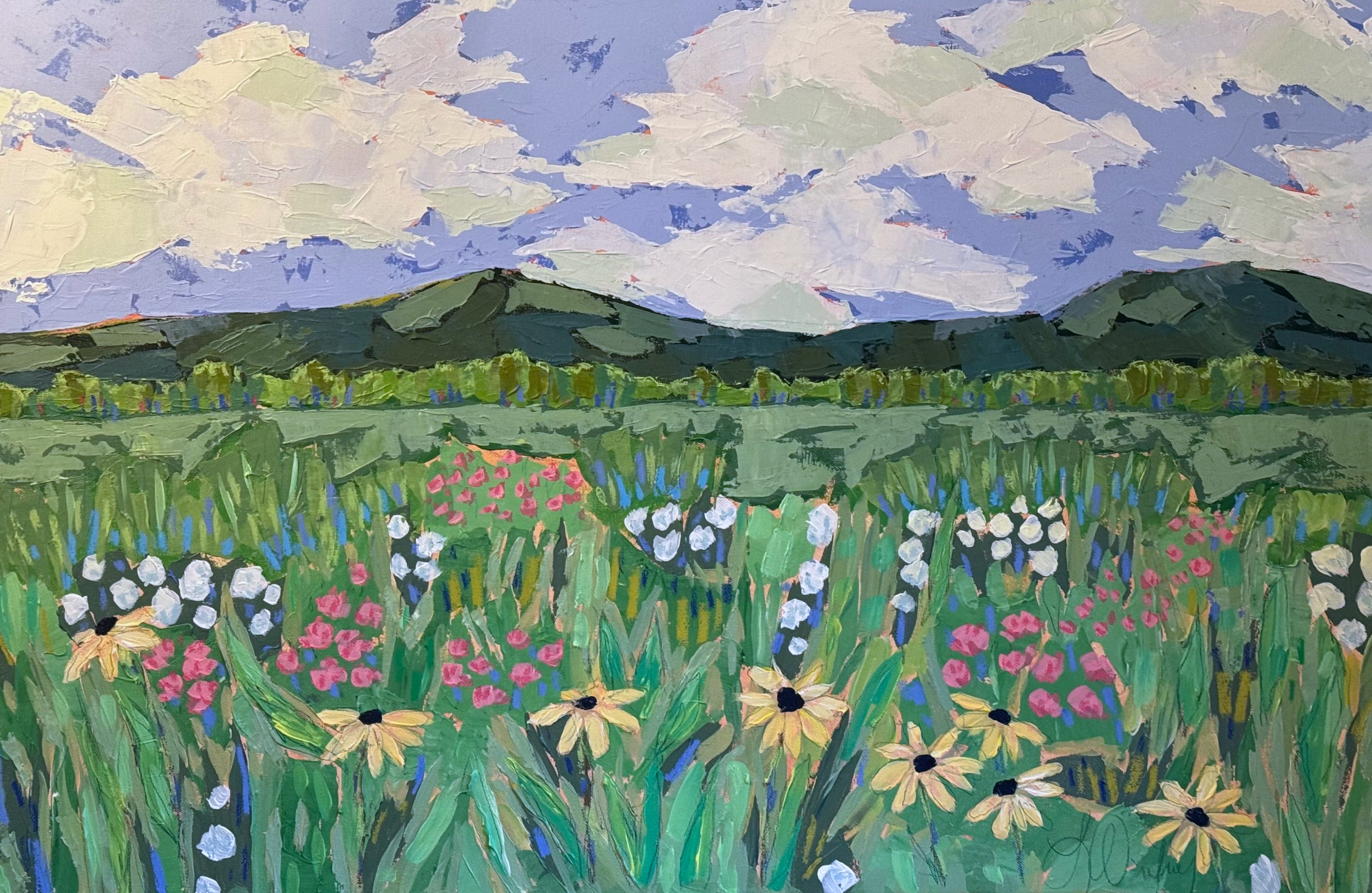 Lindsey’s paintings are an escape and journey - a time to relish the process of creativity: the brush strokes, the layers, the juxtaposition of colors. She works primarily with acrylic paints for their intensity of color and the ability to layer and create textures with various acrylic mediums and gels. A native of Lynchburg, Virginia, Lindsey’s landscapes generally focus on special places that she has known all her life, including fields at the foot of the Blue Ridge Mountains and the pristine beauty of the Cowpasture River. Working from onsite sketches and photographs, she mixes observations with her own personal memories and feelings of how she perceives a place. In addition to being an artist, Lindsey is a full-time art educator, wife, and mother of two young children.