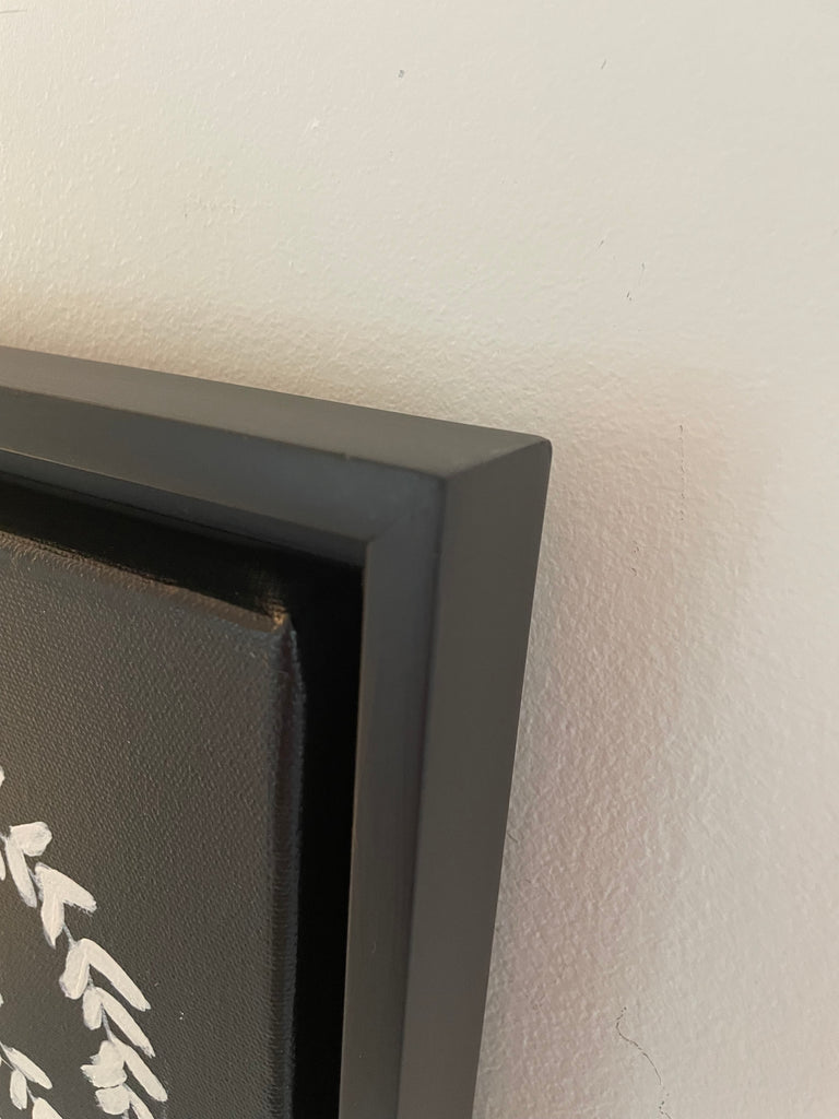 acrylic on canvas, in black floater frame