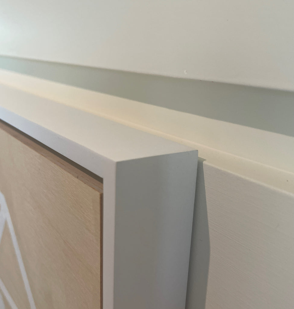 acrylic on cradled birch panel, in white floater frame