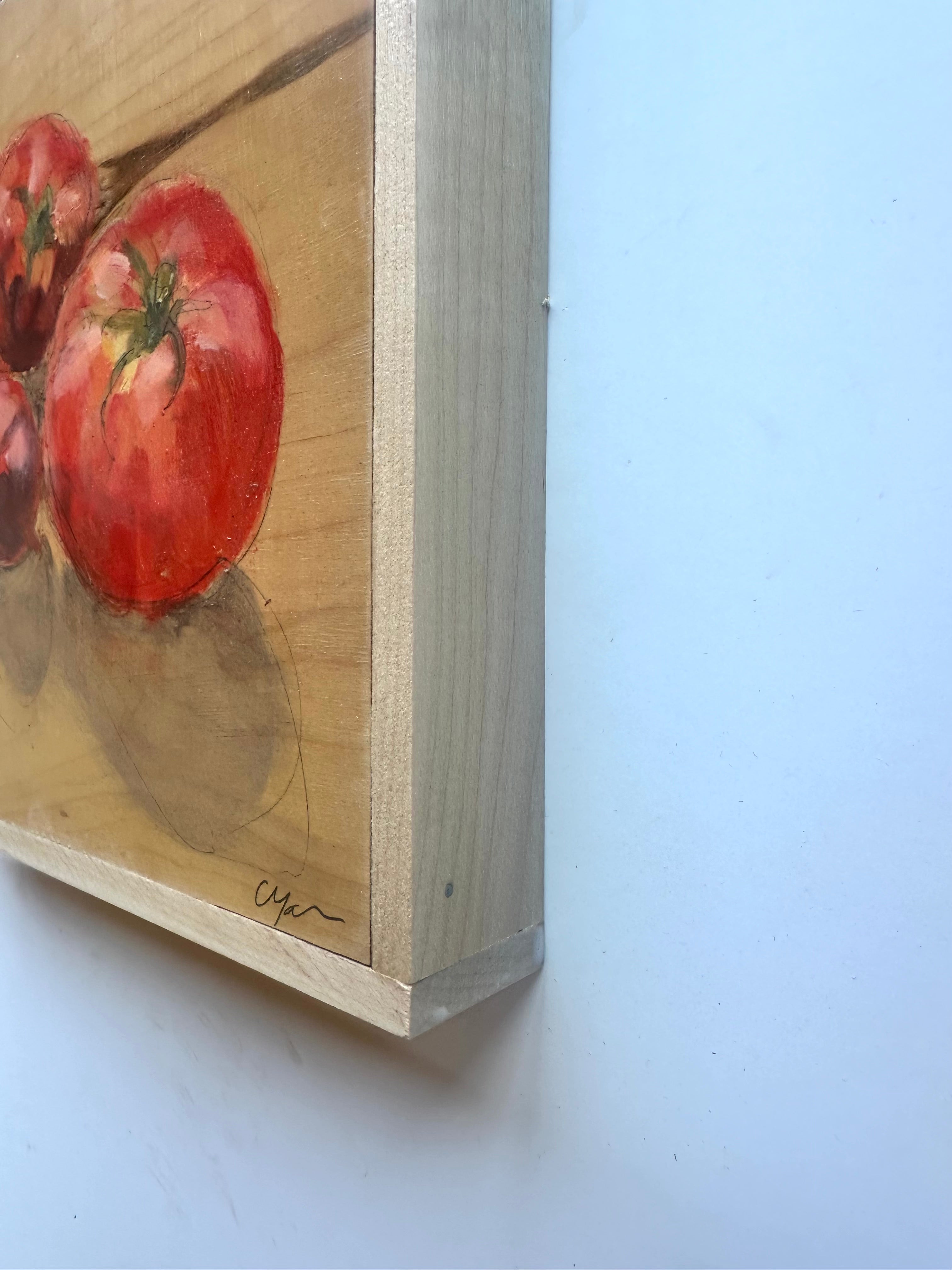 oil on wood board, in wood strip frame