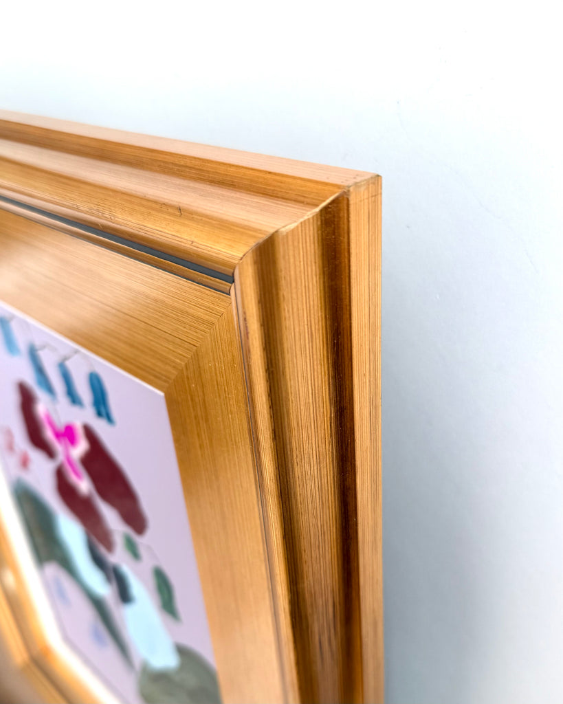 acrylic on wood panel, in gold frame with linen mat