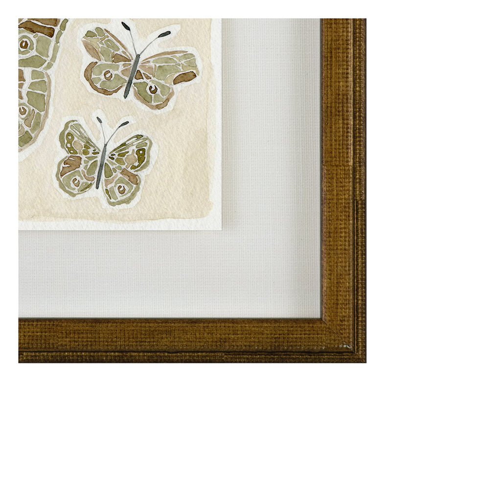 watercolor and gouache on paper, floating on white linen mat, framed in gold wooden frame
