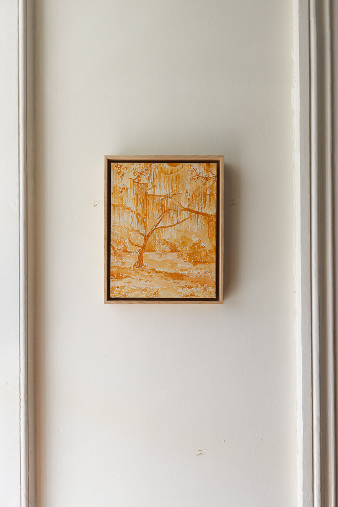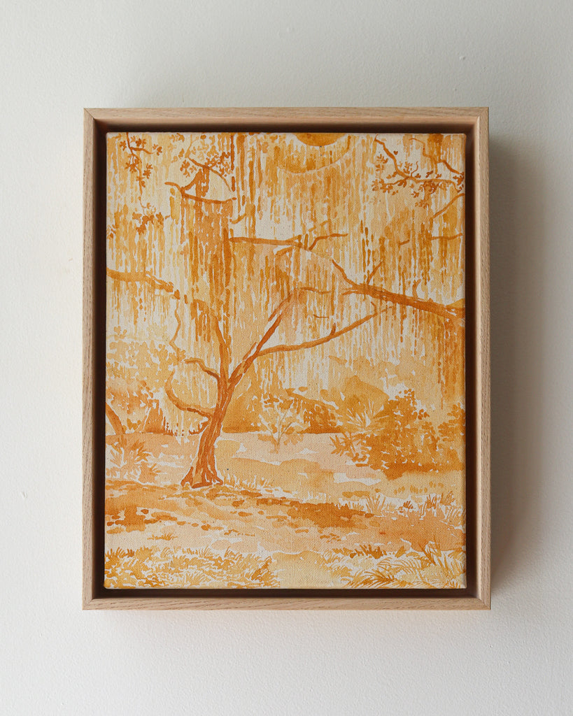 acrylic on gallery wrapped canvas, in maple floater frame