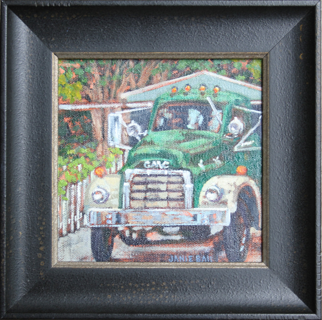 oil on canvas panel in black frame