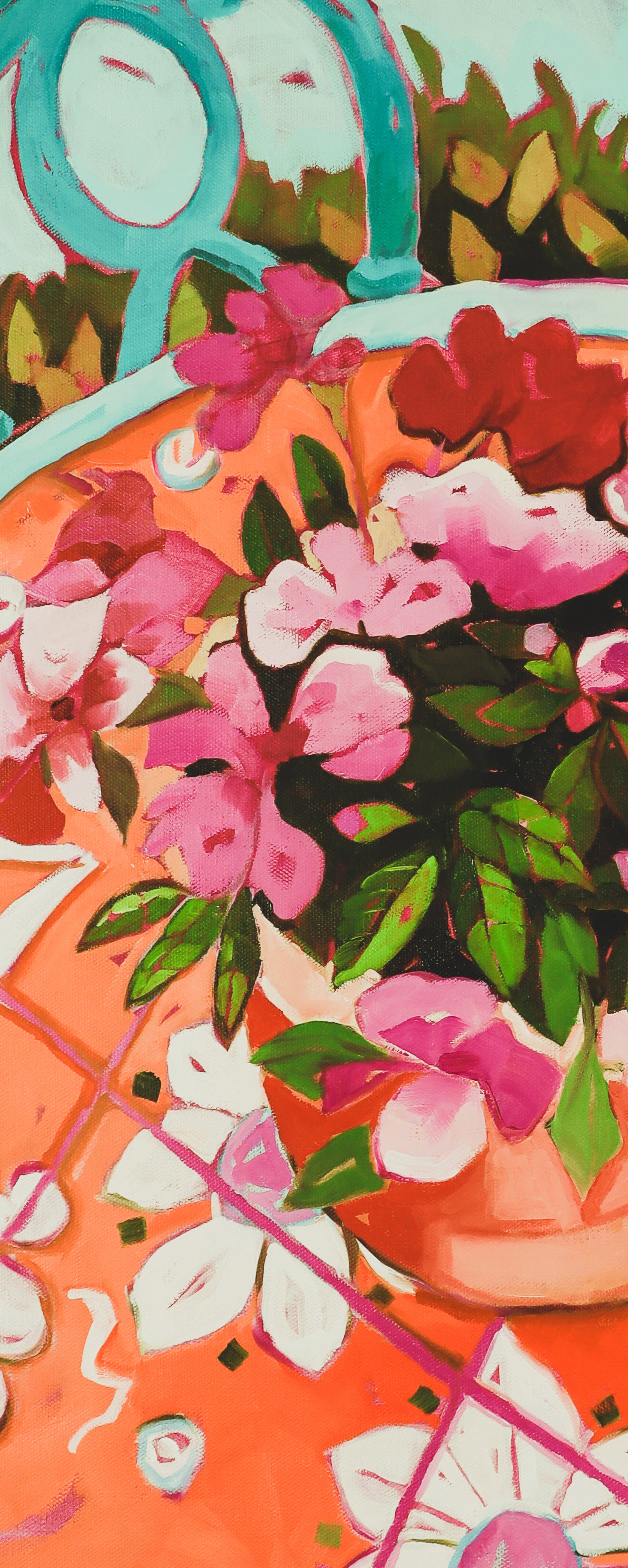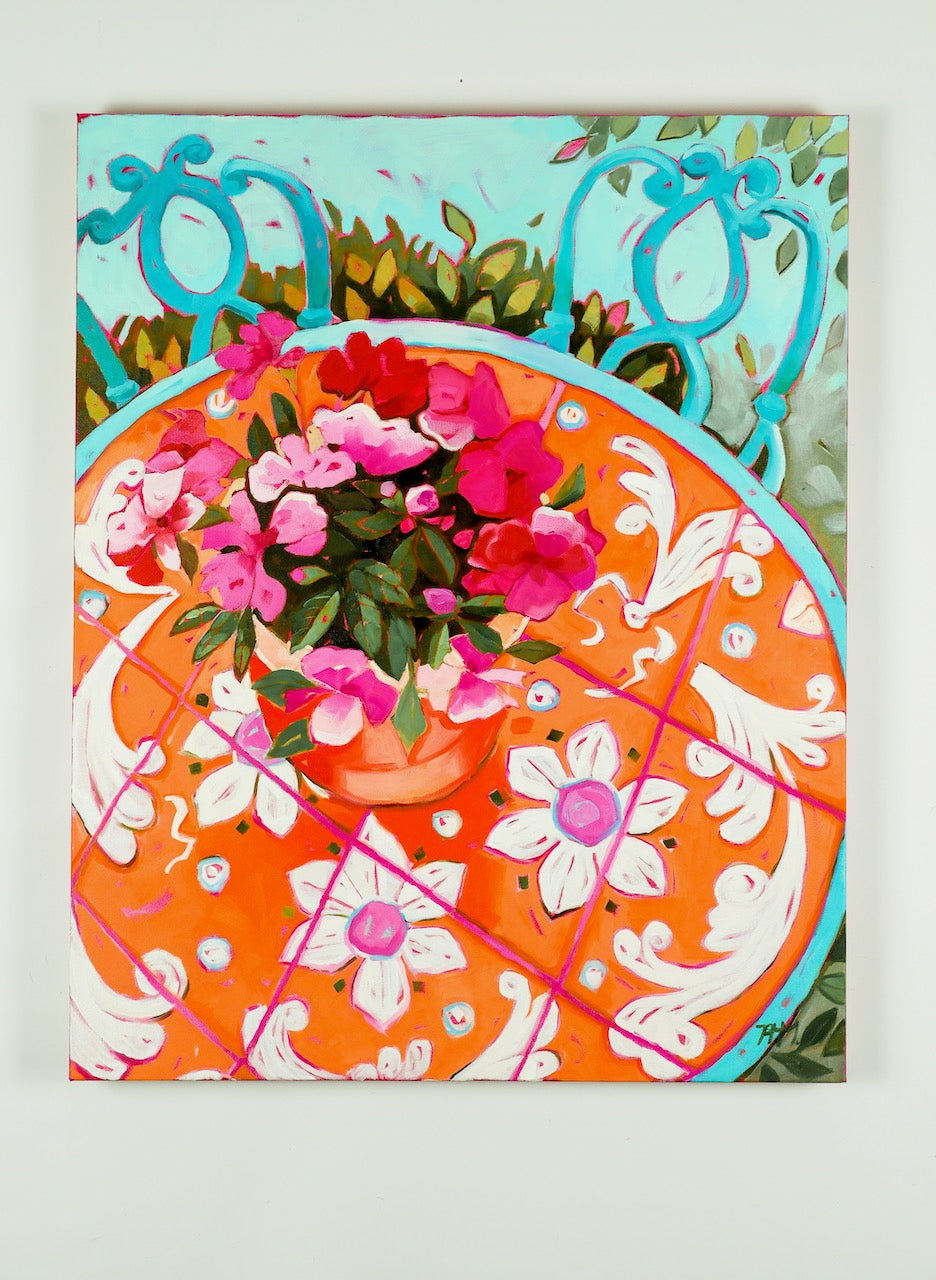Pamela’s intention as a painter is to speak to the elegance of place and object; to use paint as a means to capture an image and then to reduce the noisy elements in landscape, botanical or interior subjects, by breaking down busy images into an economy of shape and hue. “I love a quiet place. I love to have the brain space to allow my mind and my eyes to soak in the images of my world. In the same manner, the image I want to paint must also speak to my need for simplicity and peace. Our world is a busy, loud and cluttered place. I can paint those elements out, leaving only lovely positive and negative shapes, made with colors that love to be together...” Painter and avid gardener who is fascinated with color, inspired by music, good reads and lessons to learn, Pamela works from her studio with windows that let in the woods of Northeast Georgia, where she lives with her husband Van, dog Tuck and friendly wildlife.