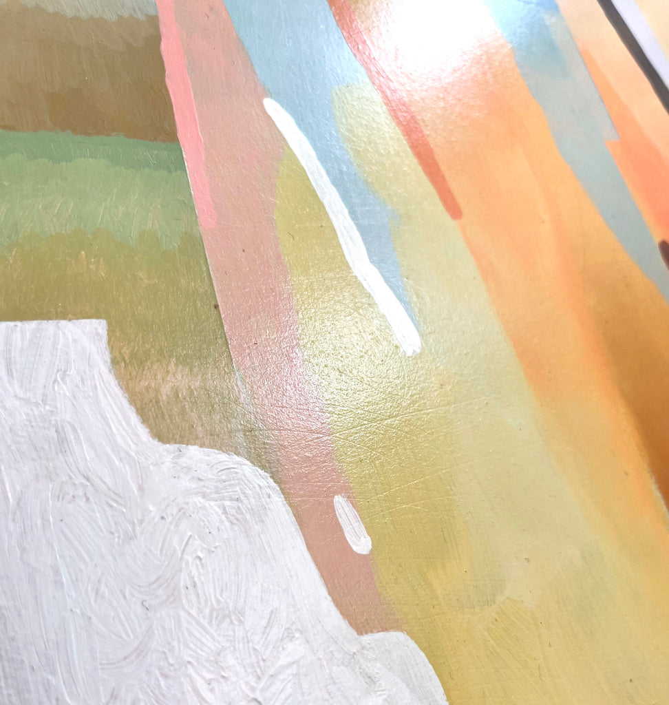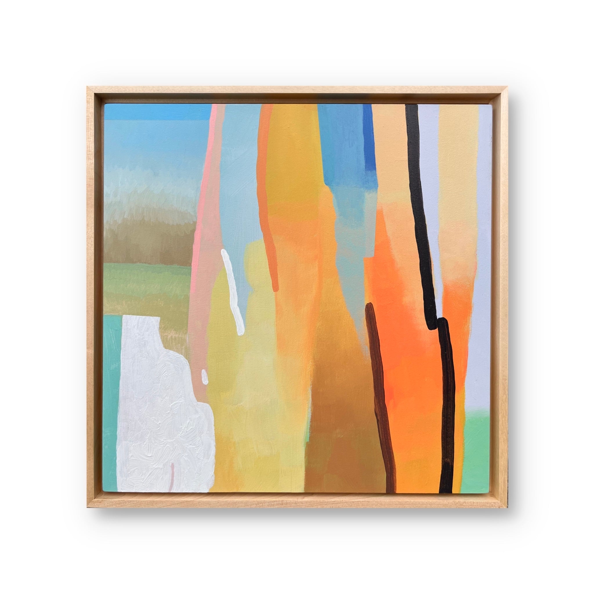 acrylic on canvas, framed in natural wood floater
