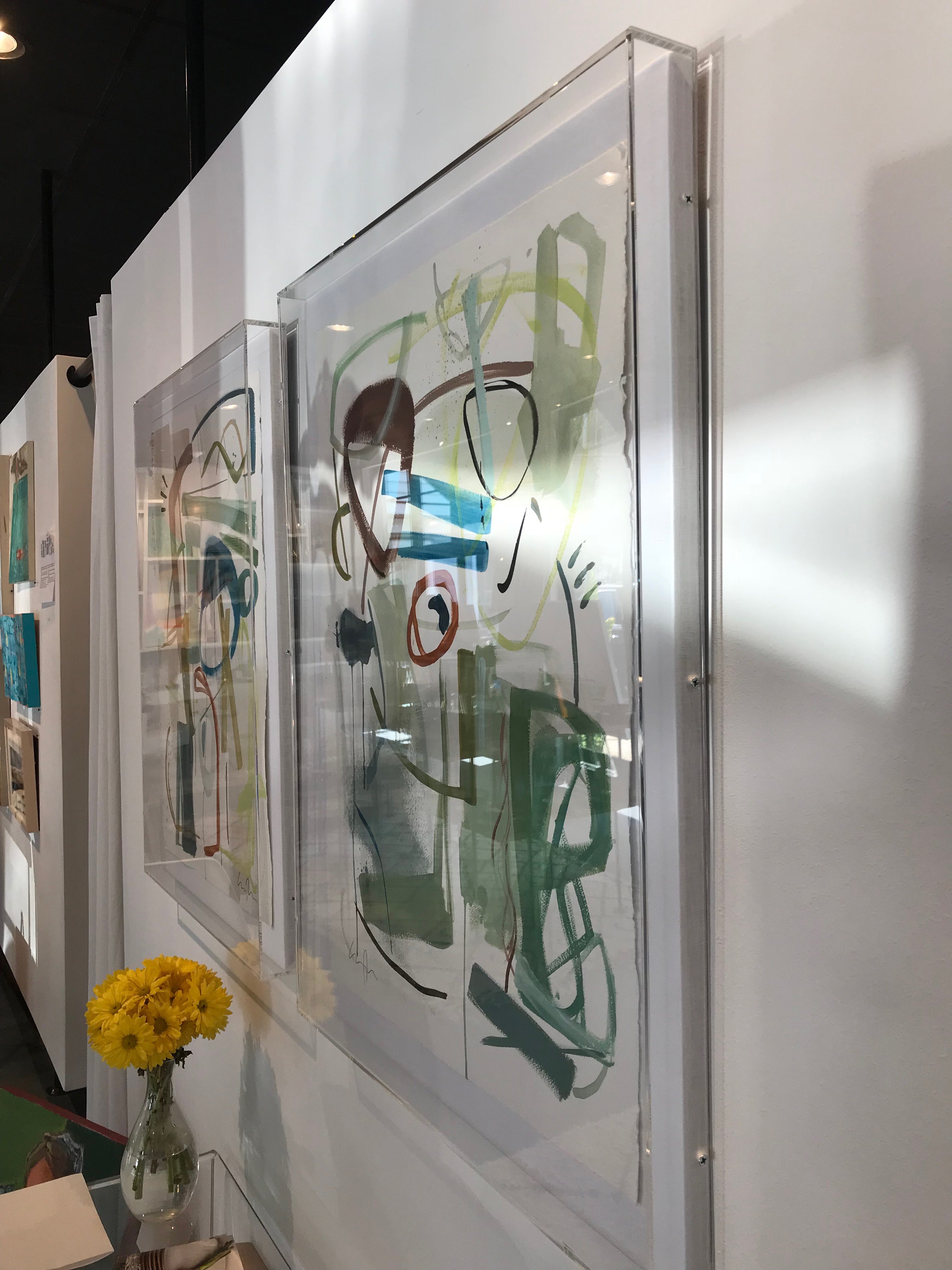 acrylic on paper framed in lucite shadow box