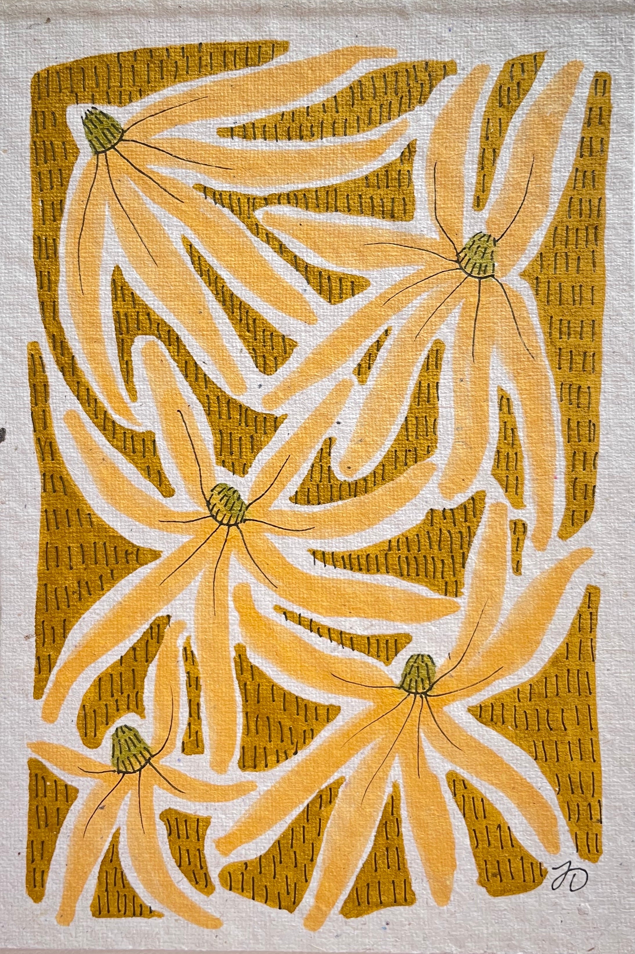 Tess Davies is an artist from Nashville, TN. She graduated cum laude from Sewanee: The University of the South with a B.F.A under the honors program in 2014. Her studio practices include murals, acrylic and oil painting, with a focus on natural textures, layered spaces and dualities. She takes inspiration from escapism and natural and biological textures and forms. "My work explores dualities. It restructures familiar, natural objects into a composition of disparate parts. It combines intricate details found in natural textures, fluidity, and chaos. Stillness and movement, color and contrast, and structure and looseness are all prevalent dualities in my work. The purpose of my practice is to address various inevitabilities in life. I am inspired by escapism and utilize this coping mechanism in my work. I use natural symbolism and feminine tropes, seen in the color palette and various natural forms. Common themes include decay, disease, growth, genetics, femininity, and repetition. I draw on personal issues and anxieties that bring people together, while simultaneously causing divides. I address what separates and connects us, and the cyclical nature of life and human tendencies. The painted, abstract beings represent our tendencies to compartmentalize and reveal personal anxieties. They transition in and out of abstractions and natural forms. This movement between the real and the imagined is representational of escapism. Creating these patterns, and repeating them intricately and deliberately, directly correlates to our repeated tendencies. It is also representative of the constant division of cells and growth found in the processes of decay and rebirth. By using natural metaphors, the purpose of this work is to beautify the inevitable."