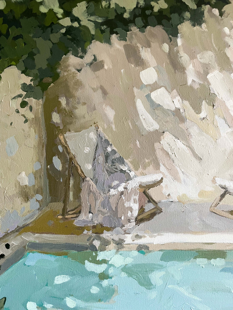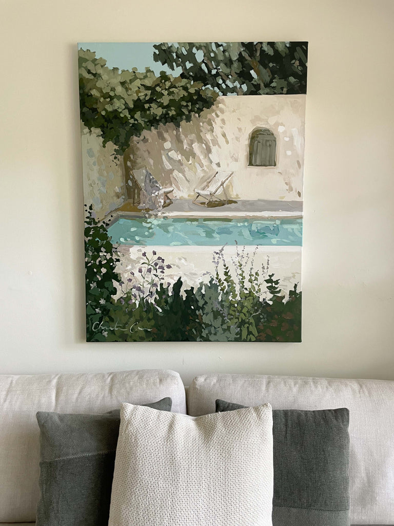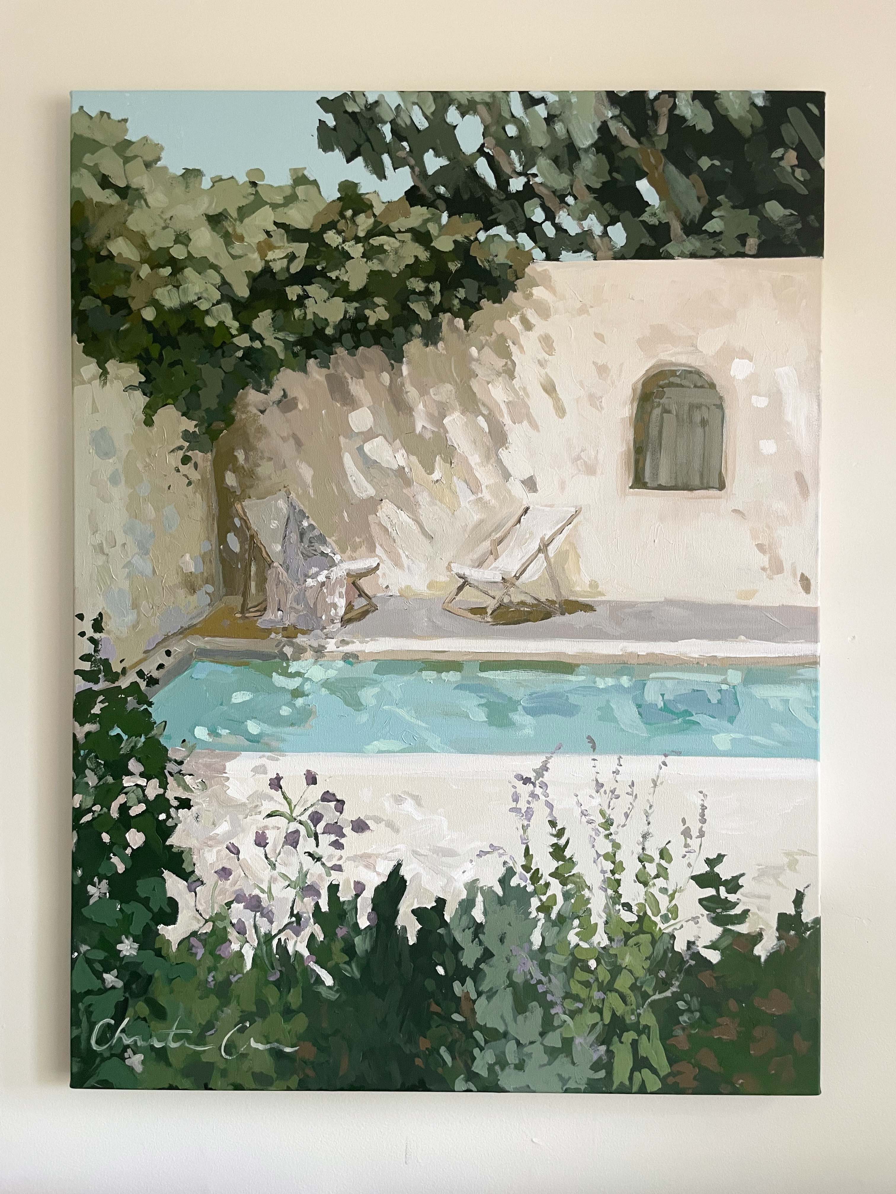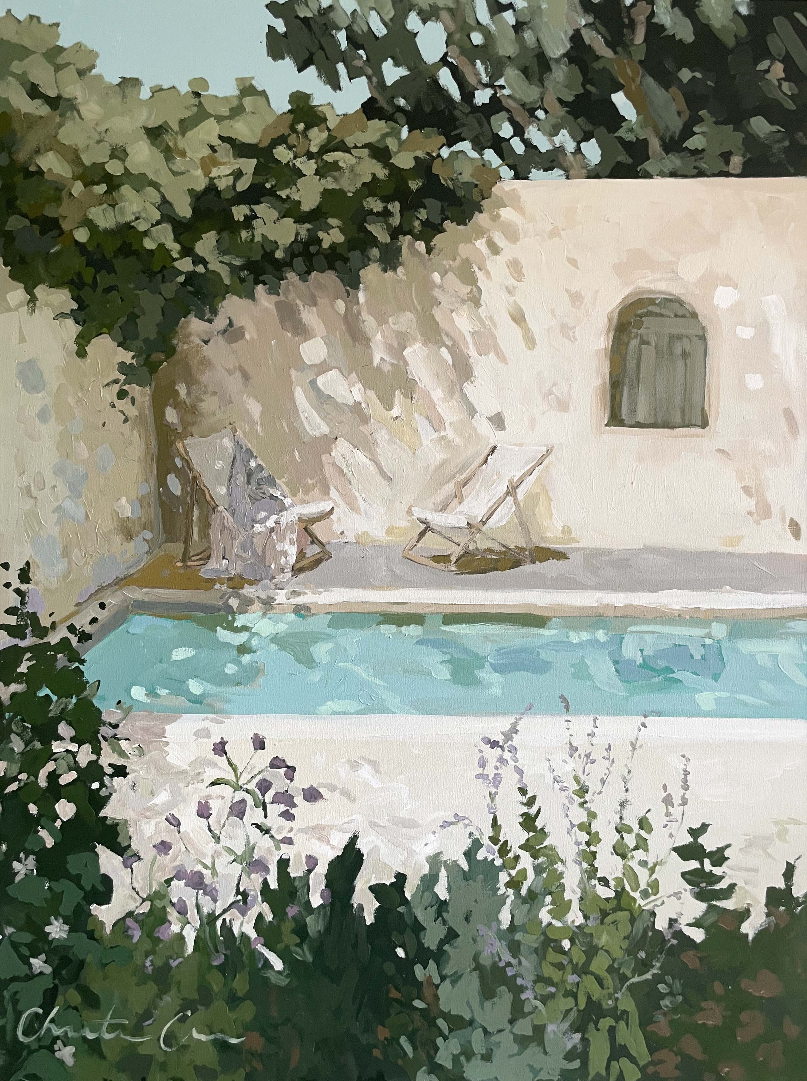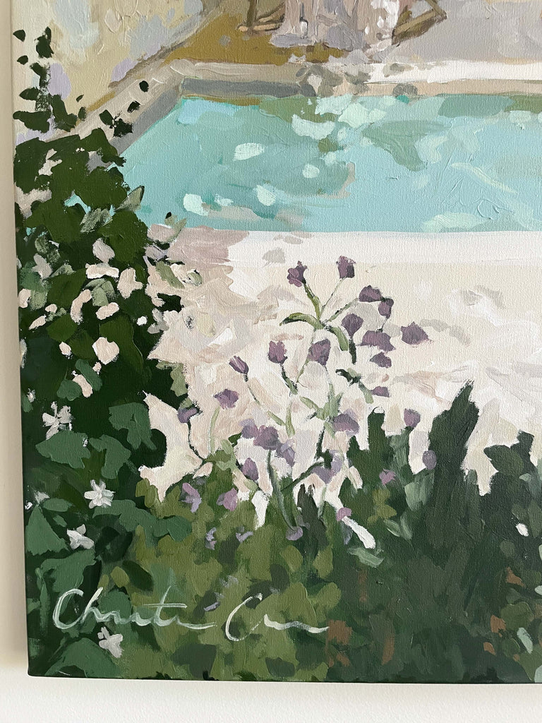 Christine hopes to create artwork that strikes the balance of fun and timeless, in an effortless manner. Composition and color harmony are a distinctive part of her work. Her palettes and subject matter are heavily influenced by her upbringing along the east coast of Florida. She hopes to bring everyday scenes to life through a new perspective and unexpected moments of color. Christine paints entirely from the three primaries (red, yellow + blue) and white. This has helped her gain a strong understanding of color theory.