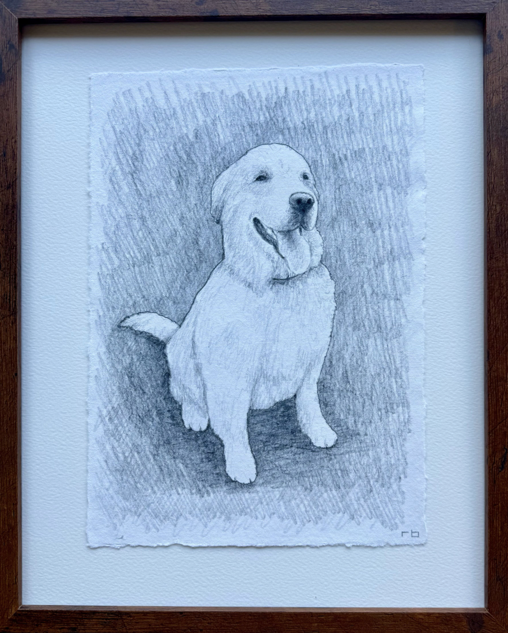 graphite on paper, framed in wooden frame