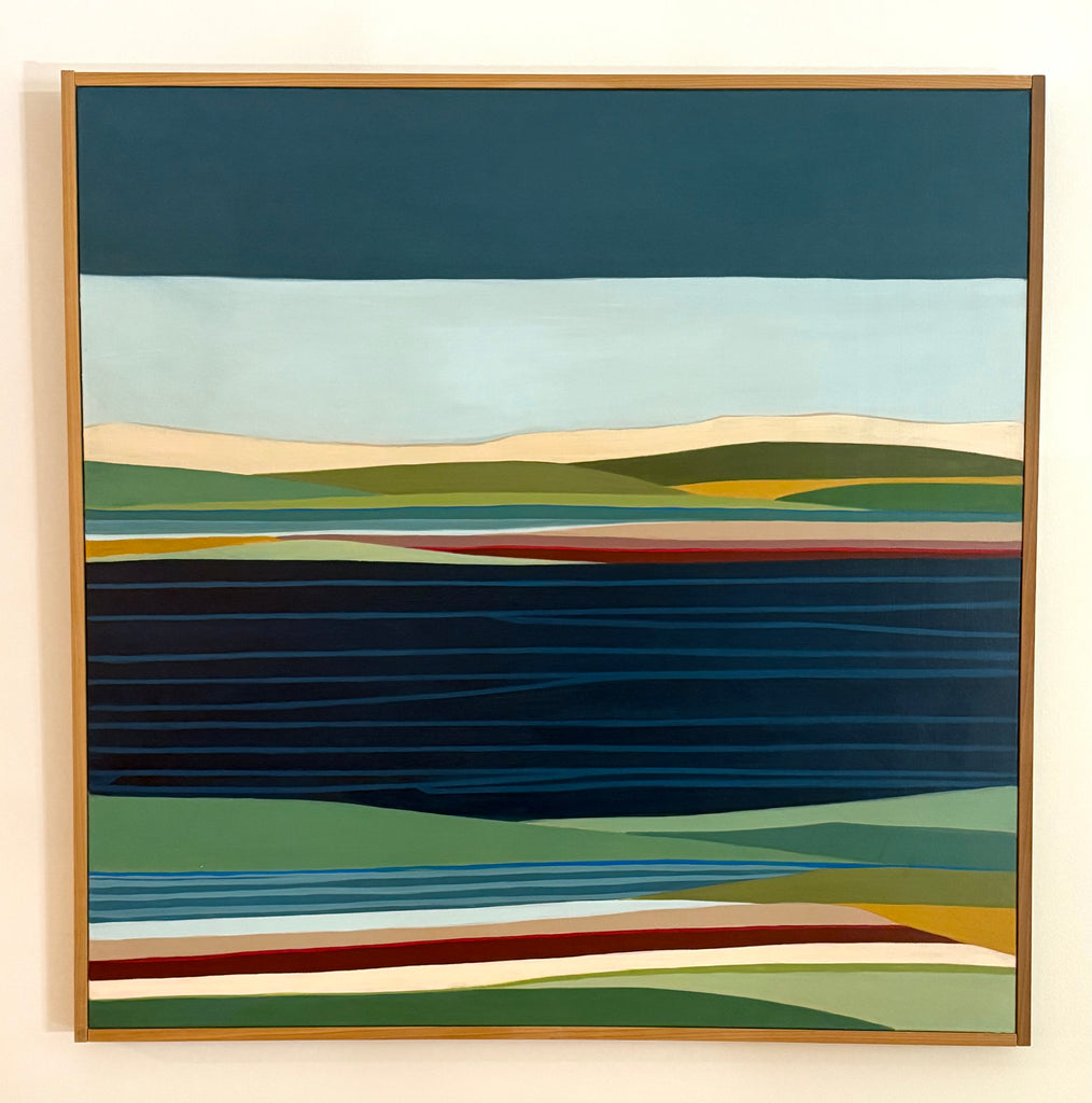 Cindy DeAntonio is a mixed media artist who uses distinct lines and shapes to create her unique and highly recognizable style. Her work is comprised of abstracts, modern interpretations of traditional lowcountry landscapes, and cubist inspired still lifes. She draws inspiration from a variety of sources including fashion, design and her natural surroundings. Cindys love of bold colors and balance are apparent in each one of her pieces. Her work have been featured in Coastal Living, Serena and Lily, Garden and Gun, and SIP magazine. Cindy grew up in Columbia, South Carolina and earned a Studio Art degree from the University of South Carolina. She currently lives on Isle of Palms, SC with her family.