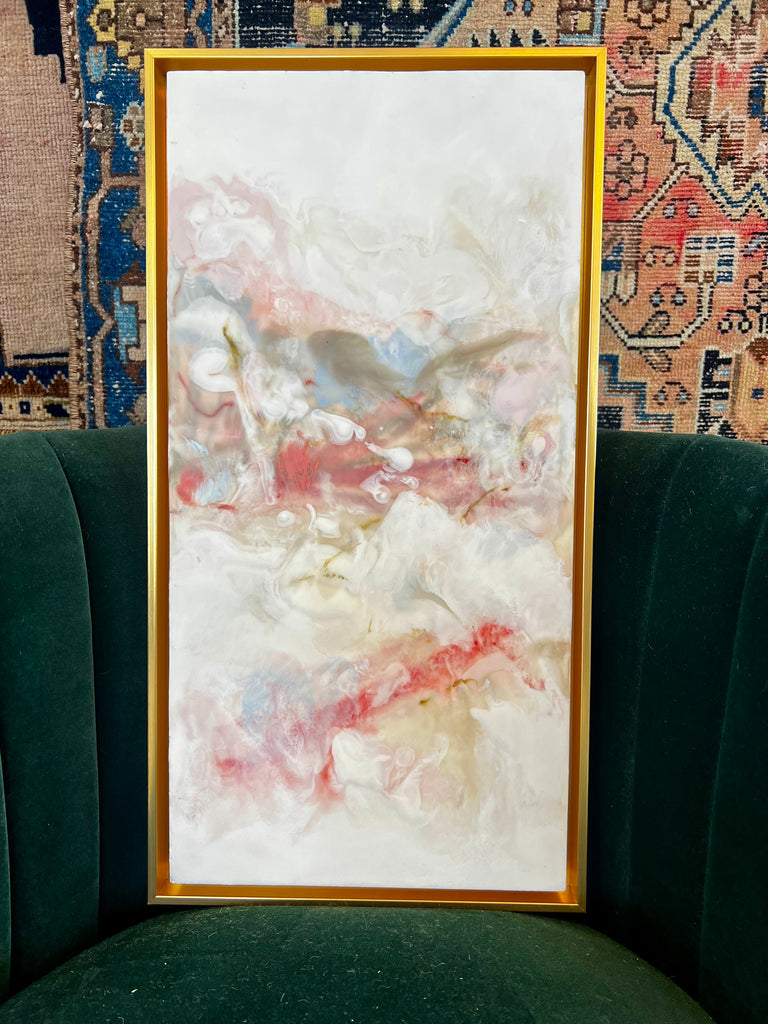 encaustic on cradled wood, in gold floater frame
