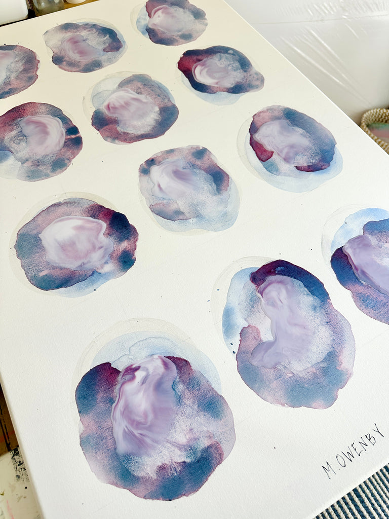 Michelle was born in Asheville, NC with a deeply rooted “maker” heritage. She developed a love of art, nature, travel + spirituality which greatly inform the foundation of her work. Influenced by her mother + grandmother, she has been using her hands + imagination since she was a child to create artful objects. Her work often reflects colors + patterns found in nature where she spent much of her childhood with her dad, who was an avid-outdoorsman. She enjoys a clean, abstract aesthetic using mainly water-based mediums, paper + natural fibers. In almost all of her work you will see her intrigue with the opposing forces of dualism. Her works are spiritual + reflective outpourings that she tries to nurture daily. Faith + family are her highest priorities so, she works from her home studio in Sullivan’s Island, SC where both peaceful + joyful inspiration are found. She resides there with her beloved husband, 2 loving teenage boys + their lazy yellow lab. Her work has been seen throughout the Southeast + licensed in worldwide markets.
