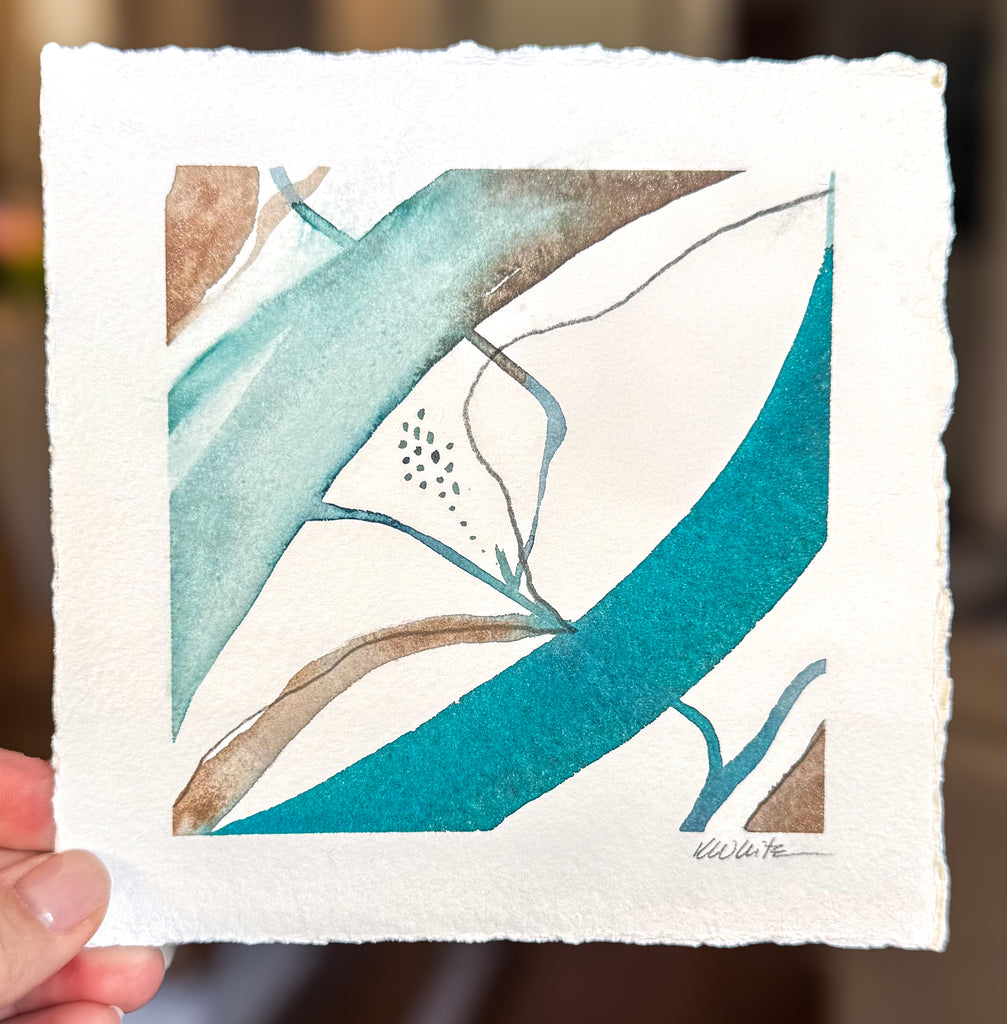 My art is heavily inspired by nature. Each creation takes on its own life, much like nature does when it unfolds. Many of my pieces greet you with a soft, serene atmosphere evoking a peaceful emotion, while others pull you in with the bold colors, telling their own story. I am drawn to the horizon line, the space where land or water meet the sky, a quiet pause at the end of the day as the sun sets, a deep exhale, or a place to root yourself to the earth. It reminds me of how important it is to stay grounded in the world we live in today.​ I received my BFA in Illustration from Washington University in St. Louis. I taught elementary art for many years and have been a professional artist for the past 5 years. In addition to my studio practice, I lead watercolor workshops and retreats. This work allows me to connect with women, teaching them how to use the medium as a tool to ease anxiety. My painting practice is what grounds me daily. I love sharing with others how to set intentions and being mindful with their own creativity.