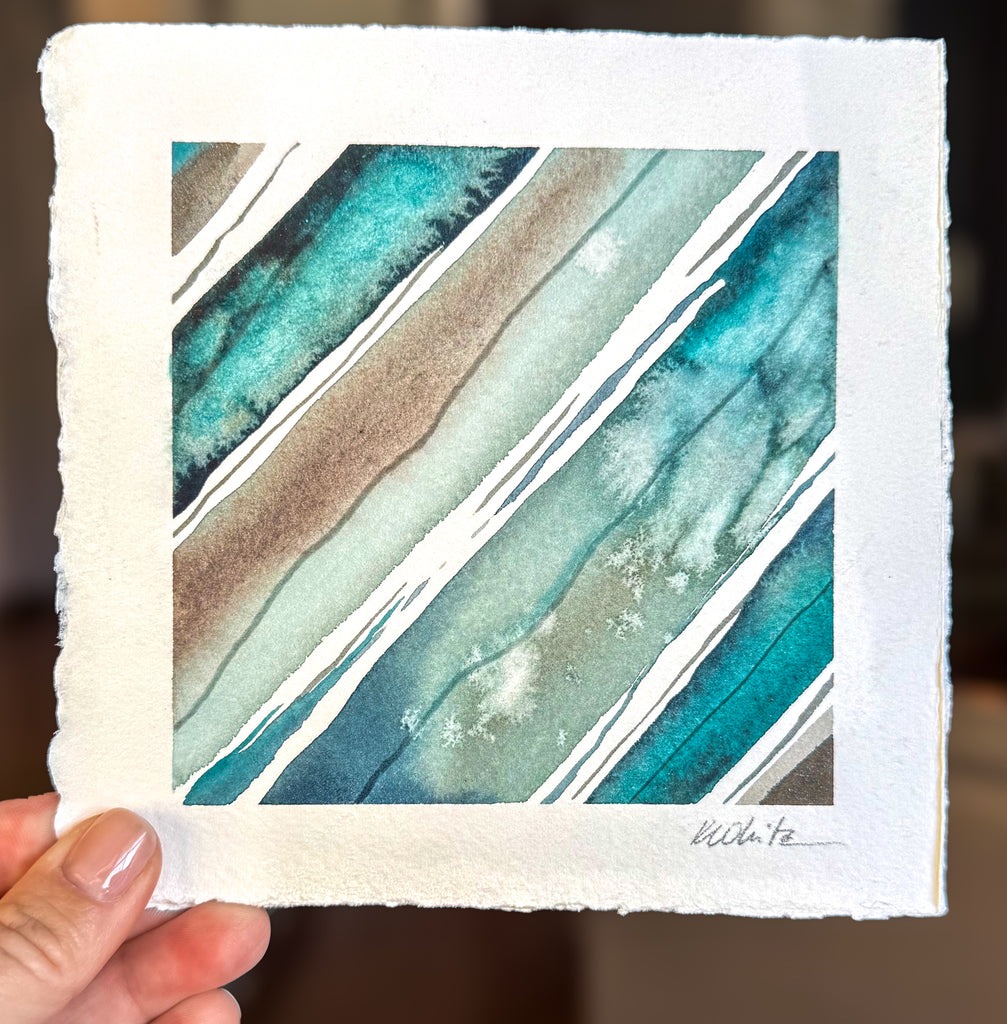 My art is heavily inspired by nature. Each creation takes on its own life, much like nature does when it unfolds. Many of my pieces greet you with a soft, serene atmosphere evoking a peaceful emotion, while others pull you in with the bold colors, telling their own story. I am drawn to the horizon line, the space where land or water meet the sky, a quiet pause at the end of the day as the sun sets, a deep exhale, or a place to root yourself to the earth. It reminds me of how important it is to stay grounded in the world we live in today.​ I received my BFA in Illustration from Washington University in St. Louis. I taught elementary art for many years and have been a professional artist for the past 5 years. In addition to my studio practice, I lead watercolor workshops and retreats. This work allows me to connect with women, teaching them how to use the medium as a tool to ease anxiety. My painting practice is what grounds me daily. I love sharing with others how to set intentions and being mindful with their own creativity.