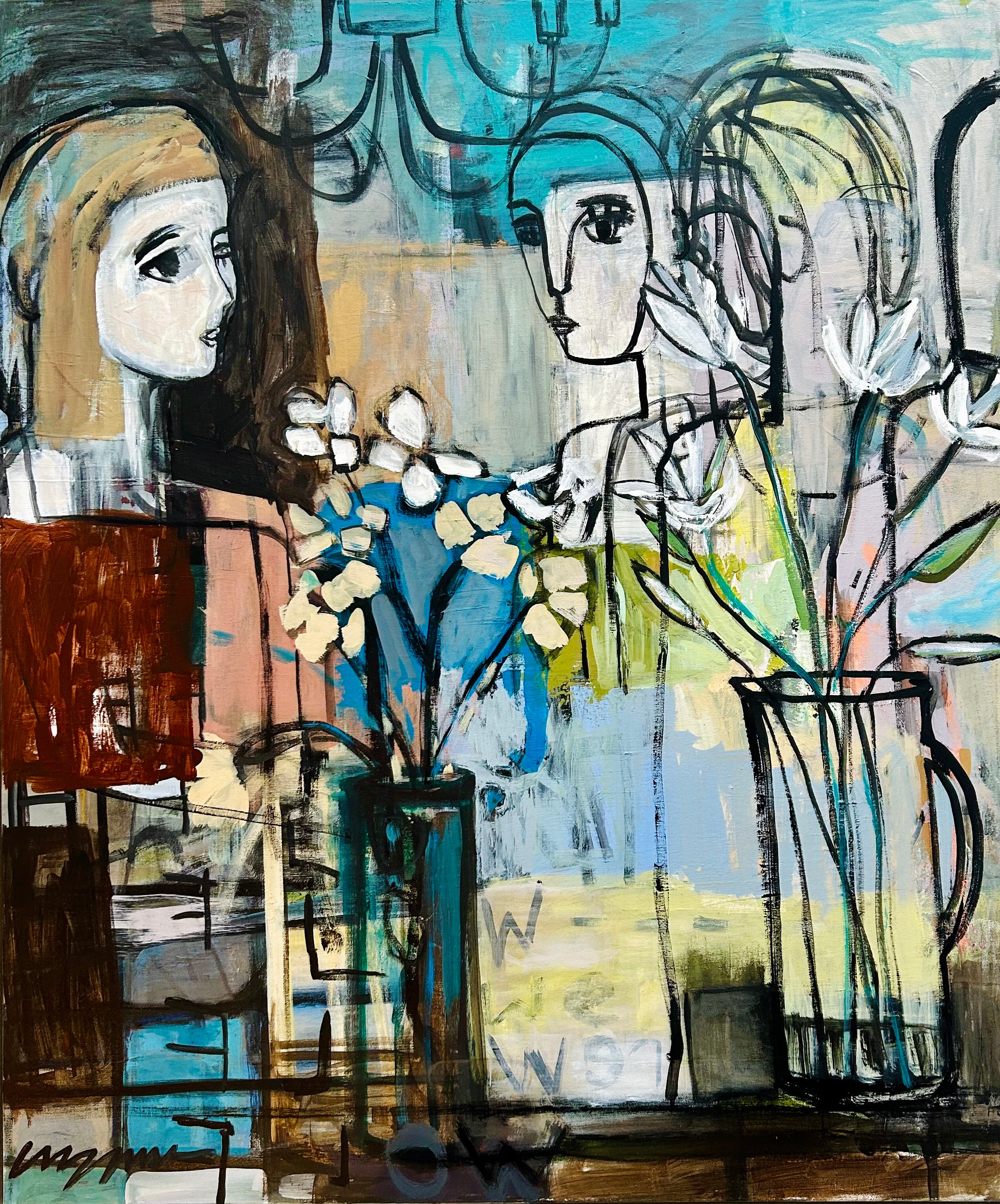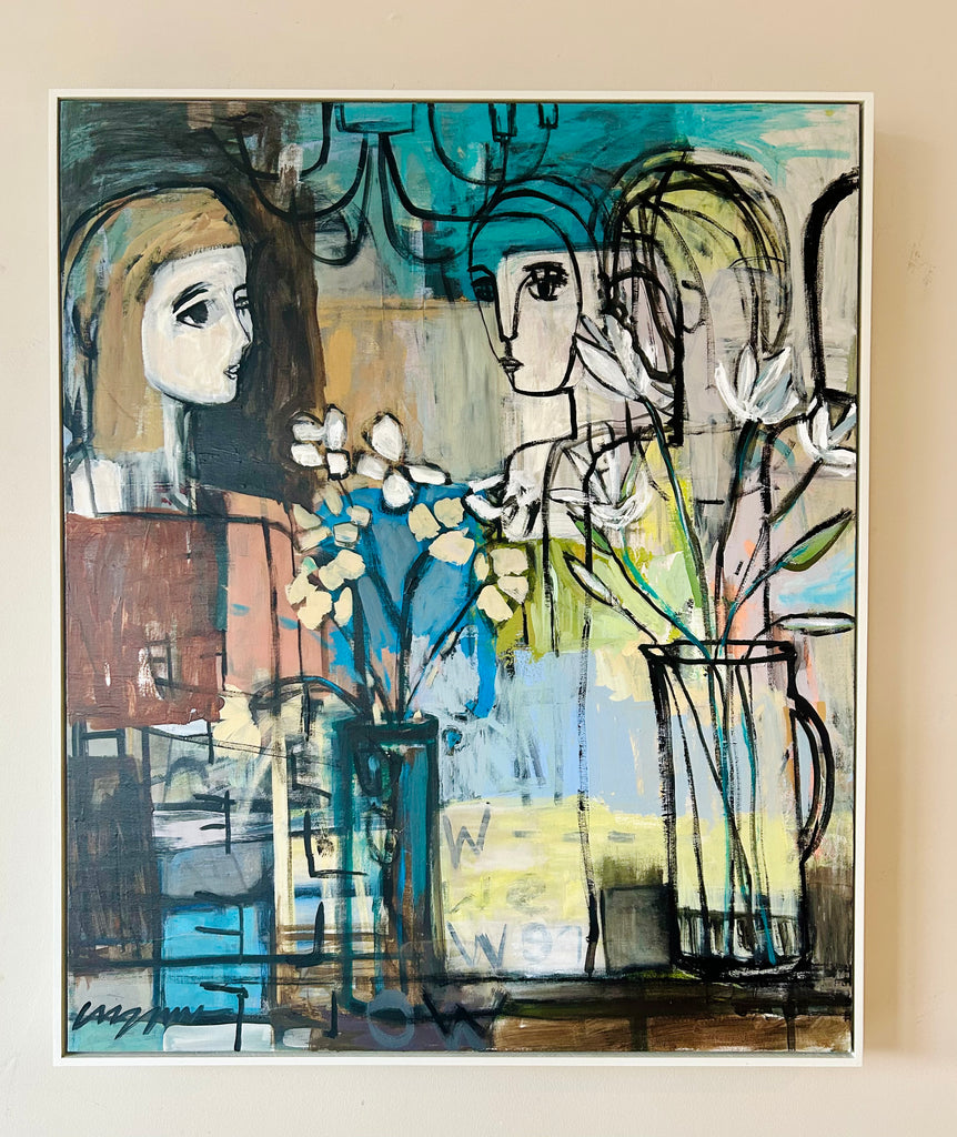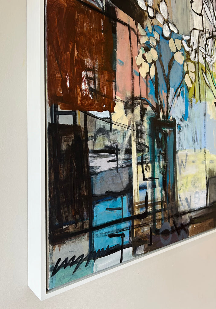 acrylic on gallery wrapped canvas, in white floater frame