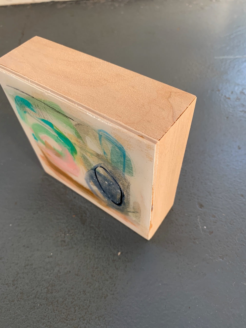 acrylic, oil pastel and resin on cradled wood