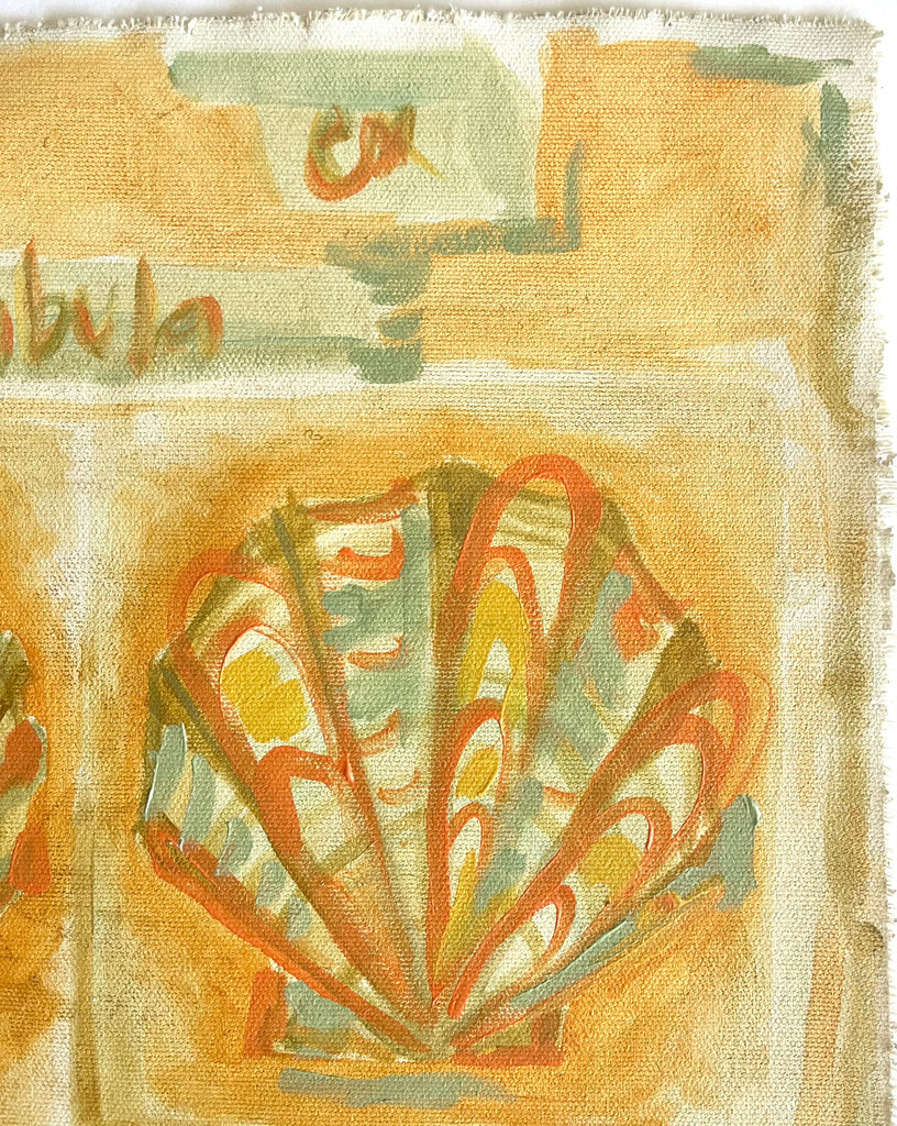 acrylic on loose canvas with deckled edge
