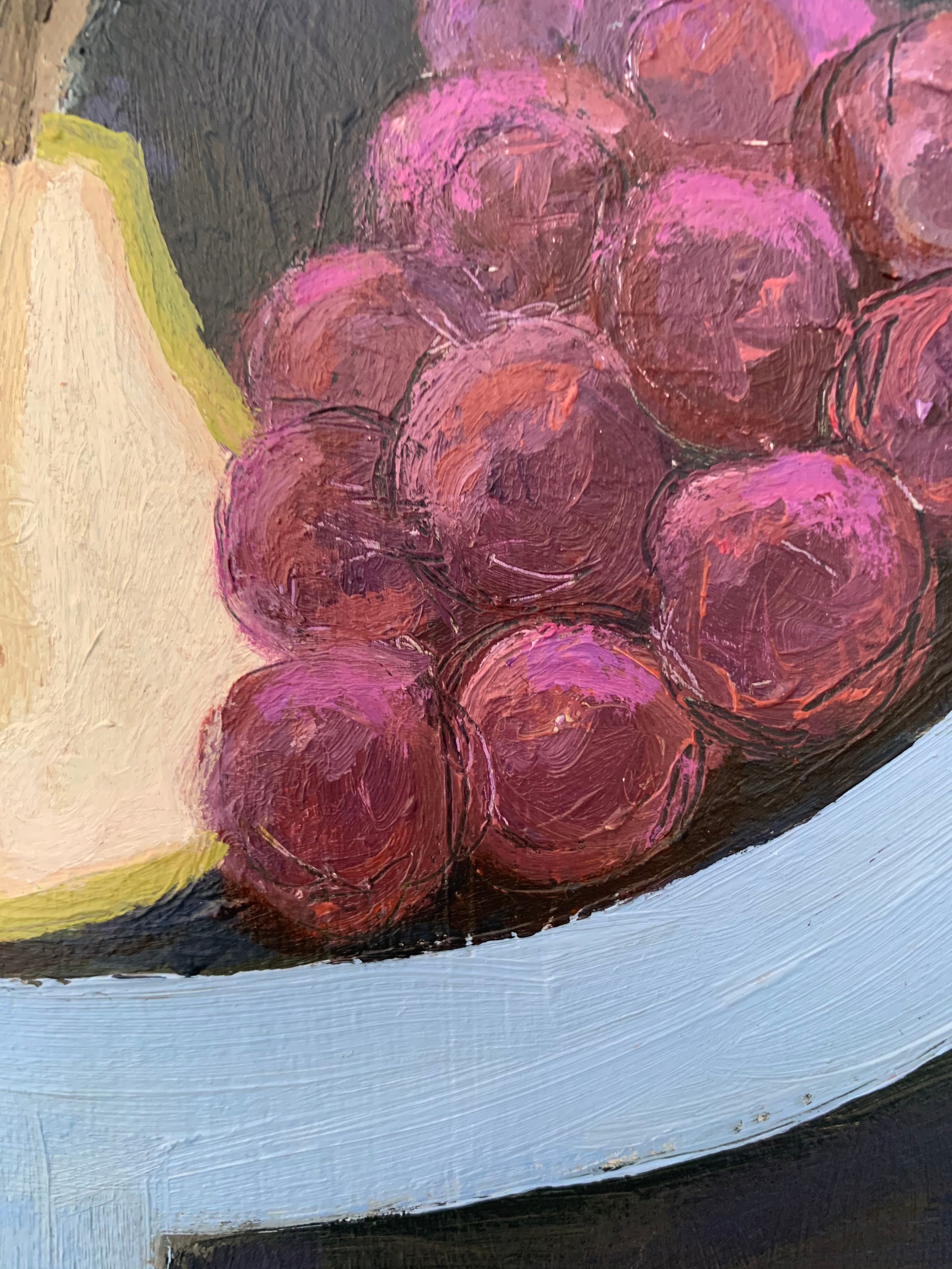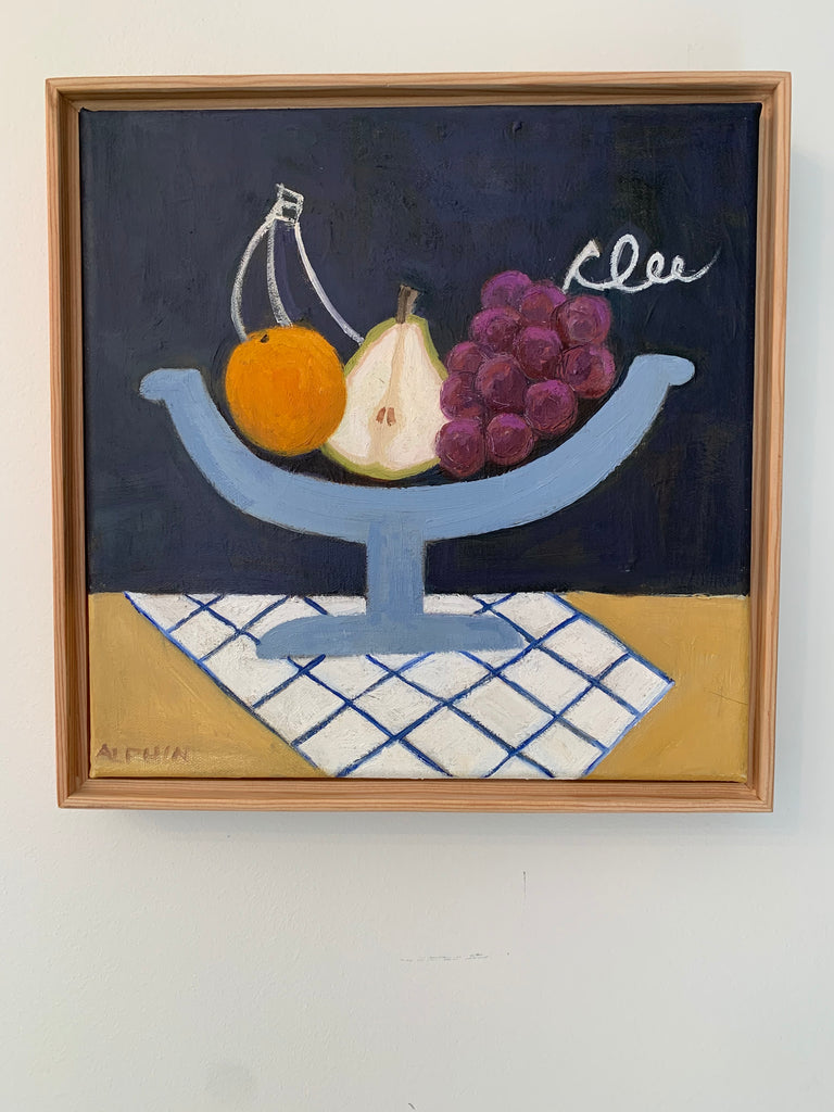 acrylic and oil on canvas, in natural wood frame