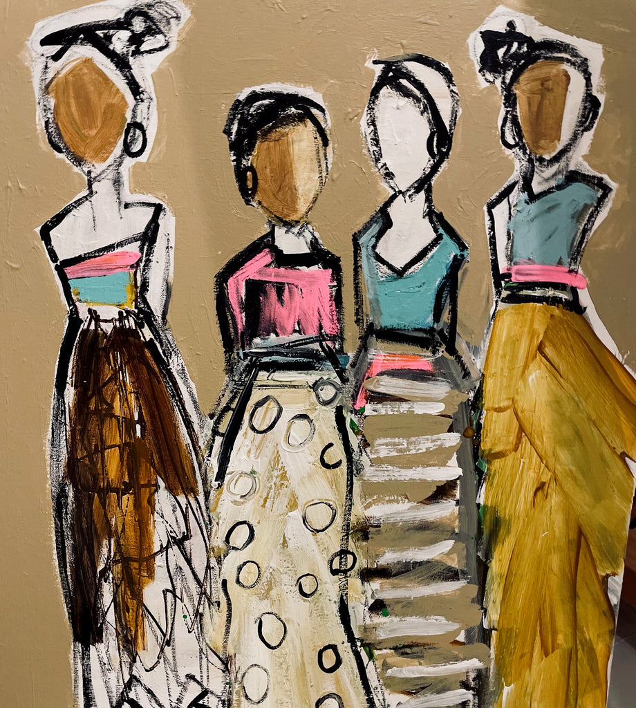 Page Morris picked up a paintbrush in third grade and never looked back. Largely self-taught, her client list reaches as far as Canada and includes syndicated columnist Kathleen Parker. Galleries representing her work include: Verve and Over the Mantle in Columbia, SC; Grand Bohemian Gallery in Charleston, SC and One Kings Lane. "My subject matter is women who are feminine, colorful, playful, strong, and beautiful. I use paper, pencil, markers, oil sticks, and paint to achieve a multi-dimensional look. I love texture because the viewers see even more when they stop to take a second look. I adhere to a rigid schedule of painting each day. Creativity only happens if I'm hard at work in my studio. I love what I do and hope my viewers can see that. It's a joyous experience to pick up a paintbrush. It's what I do and what I am."