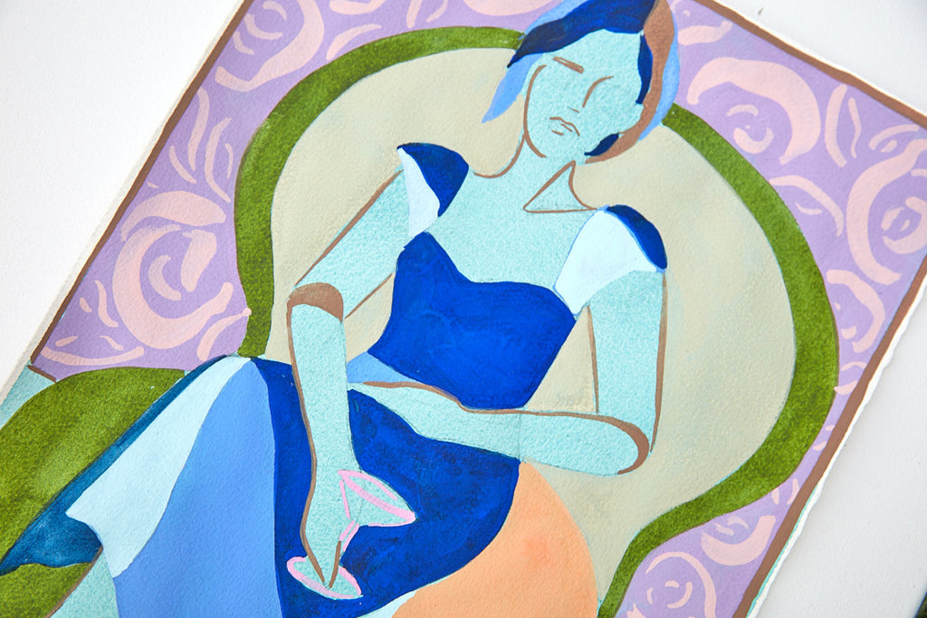 My name is Lizzy Love and I'm an artist in Nashville, TN. I create figurative works on canvas with acrylic paint and papers with watercolor and gouache. This body of work has been a rebirth for me creatively. While I've been painting full time for the last 5 years, I feel like I've really come into myself creatively with my figurative paintings. Born out of a time of uncertainty and lots of questioning, I was pushed to dig deep and get back to basics. I decided to switch gears from painting the landscapes, for which I had been primarily making for years. As an effort to get my creative spark back, I started sketching figures from magazines, a subject I hadn’t explored in a long time. Over many months they slowly evolved into what they have become; starting from detailed and realistic, to more abstract and modernist. I am a big believer that the environment of your home shapes your attitude, and for that reason I love interior design. That love is what led me to start incorporating furniture / interior surroundings / and patterns into the pieces. I pull apart and put back together the lines and shapes of many of my favorite interiors, and place them amongst the figures in a dynamic way. These ladies embody many things - community, respect, femininity, reverence. They are a way to draw attention to what being a woman entails. Many times it means being fierce and strong. Many times it means leaning on and drawing your strength from friends that are like family. While creating each piece, I draw upon the love and reverence I have for all the women in my life; the women who have shaped me, lifted me up when I needed it, laughed with me, and inspired me.