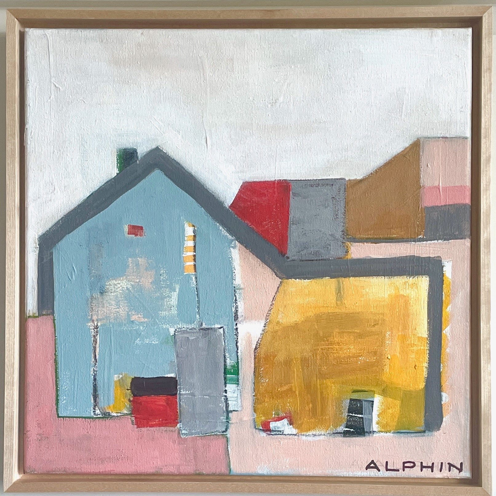 Debby Alphin grew up in Charlotte and graduated from the University of North Carolina at Chapel Hill, working first in advertising and later in software design. In 2003 after raising a family, she decided to pursue a second degree in architecture and began taking drawing and painting classes in order to create an entrance portfolio. The art won out and she began painting full time. She works in both oils and acrylics and describes her abstracts as a way to create order out of chaos. She has been fortunate to study with Elizabeth Ross, Andy Braitman, Nancy Franke, Jeanette LeGrue, David Shevlino, Gary Weiss and Gary Bodner. The California abstract artist, Nicholas Wilton, has been an incredible teacher and mentor. Artist Statement: “While architecture, geometry, symbols, and anything black and white have always inspired me, they are becoming much more apparent in my art. I like a certain amount of structure as I feel it grounds my work. From there I intuitively reference my own vocabulary of icons, both real and invented to create a narrative. I gravitate to straight lines, graphic shapes, lost edges and unique mark making to create a visual story which in the end I hope is as entertaining and appealing to the viewer as it is me, the artist. The joy is in the process.”