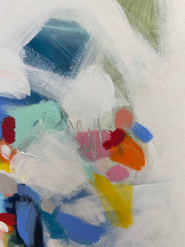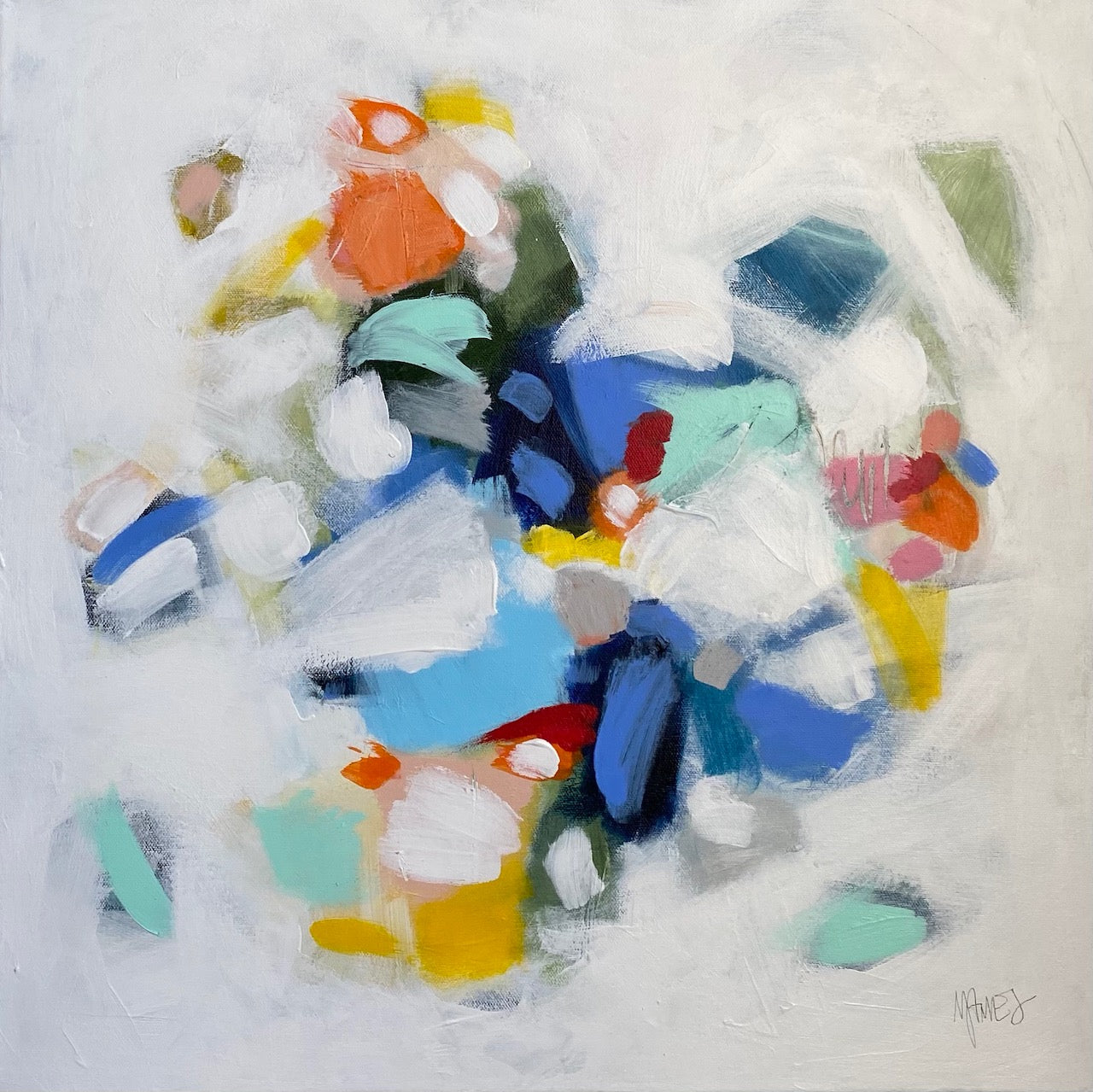 Michele James is an abstract painter known for her large works on canvas. She is inspired by color and movement and uses strong brushstroke and varied marks on neutral canvases with pops of bold colors. She paints with acrylics , and uses chalk, oil pastels and pencil to vary the texture and medium of her works. She is influenced by the colors in nature, the lightness and space of the sky, and the texture and depth of landscapes. “I love to make people happy and for a client to add my painting to their home is wonderful compliment” Michele received a BFA in fine art and art history at Hunter College in New York, NY with a concentration in studio painting. Michele paints out of her home studio in Atlanta where she lives with her husband and three kids.