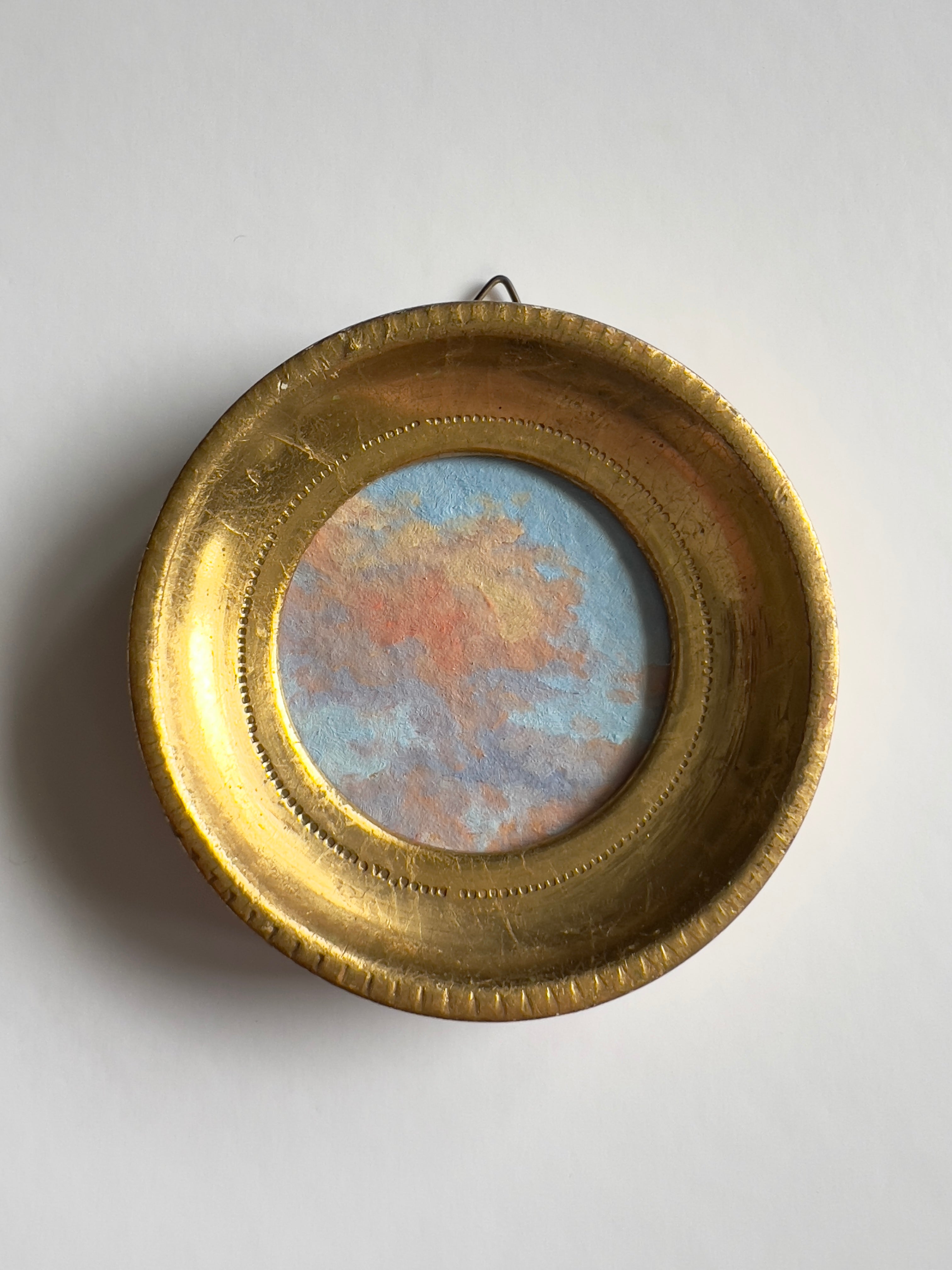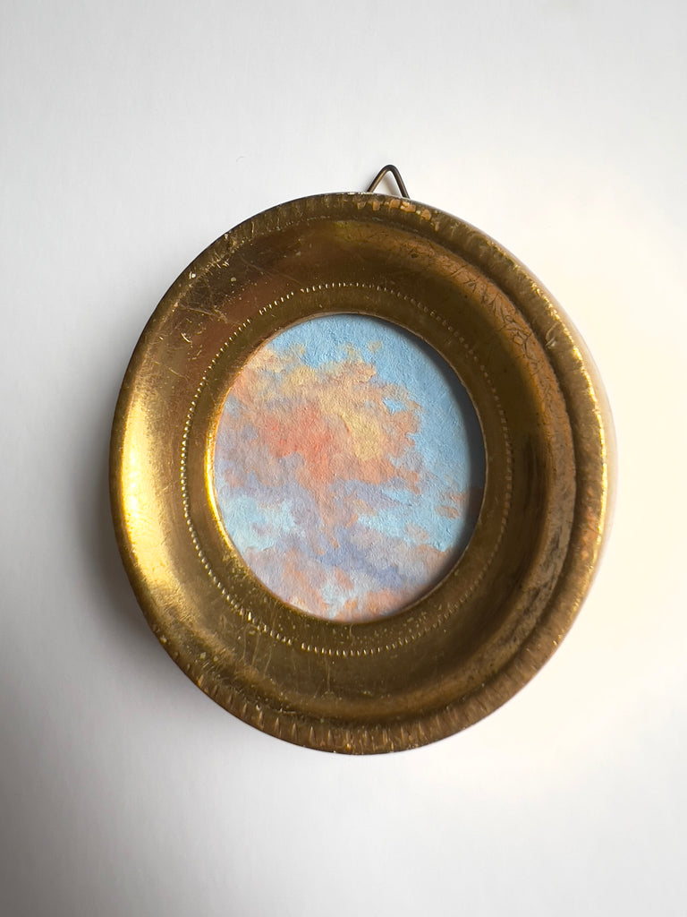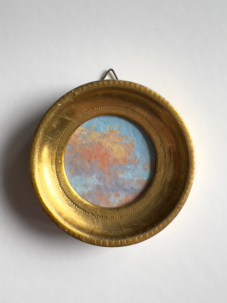 oil on handmade paper, framed in vintage  gold frame