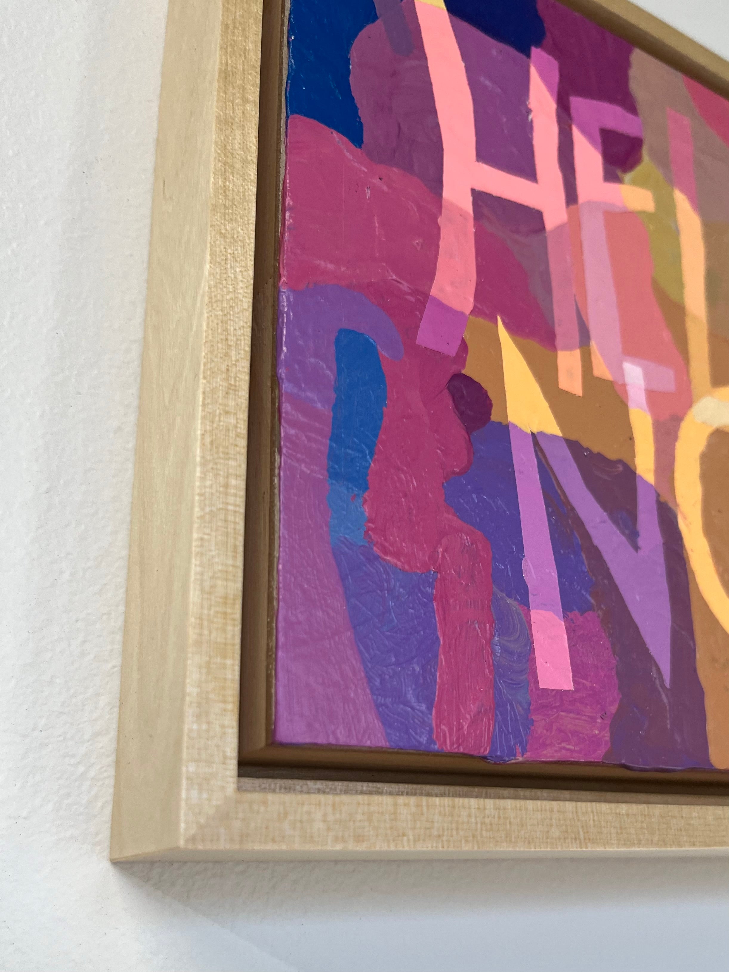 acrylic on canvas panel, in wood floater frame