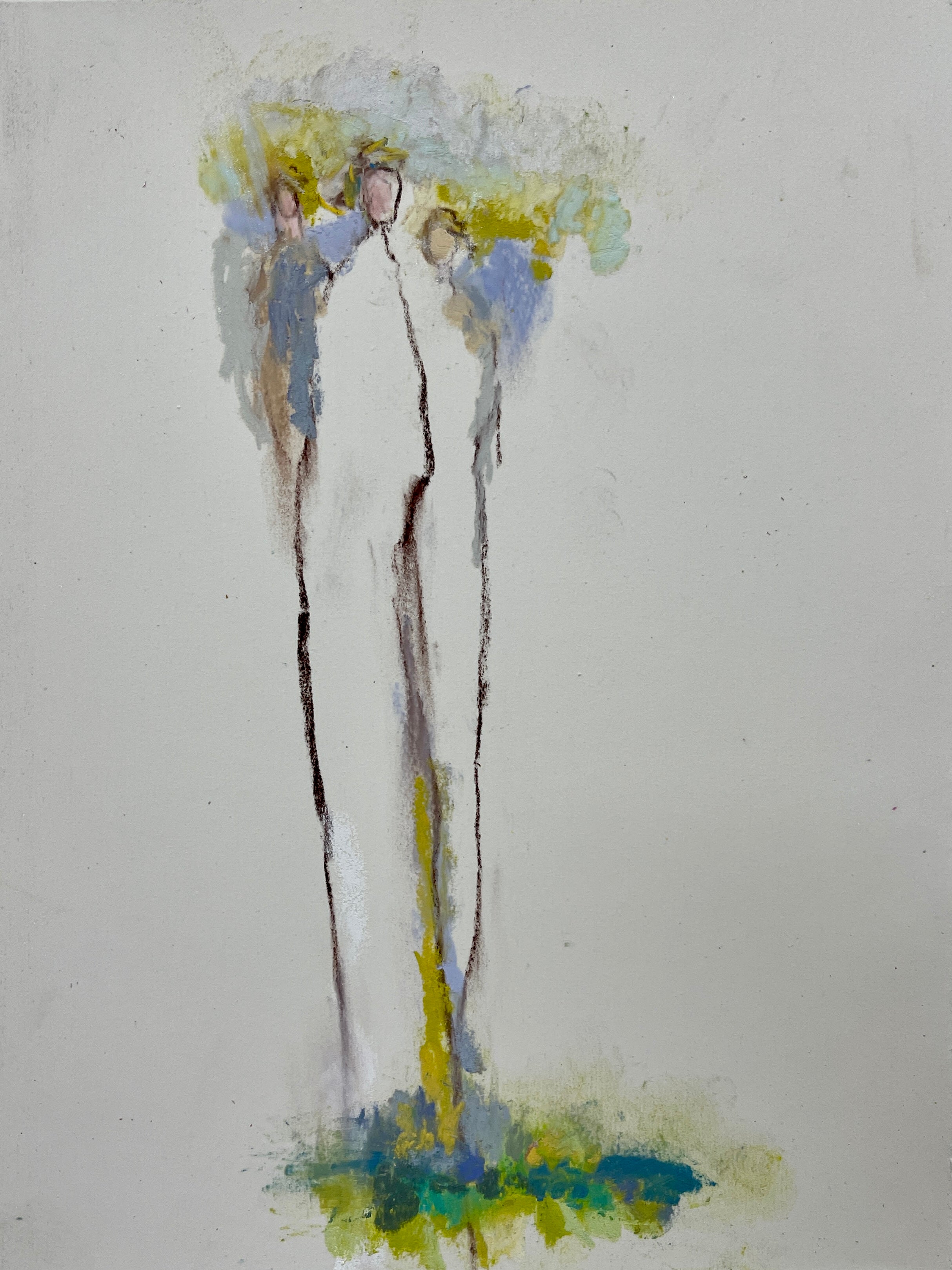 Linda James grew up in Rome, Georgia as the oldest of 5 children. Linda loved to draw from a young age. Her parents always encouraged her artistic endeavors and framed much of her college work to hang in their home. She believes that people are created with the interest, and encouragement takes us onward, which is exactly what her parents did for her. Linda is most known for her ethereal award-winning Angels and has done a number of landscapes over the years - the greens and browns and blues are always layered and lovely. However, for this new body of work, she "wanted another dimension - a twist maybe, so is working in colors unusual for landscapes and lines instead of shapes - all of which is stimulating and thought provoking - and, with the soft pastels they take on an abstraction that feels exciting." Through her work, Linda aims to share God's word in a way that touches others and perhaps awakens a desire to know Him better.