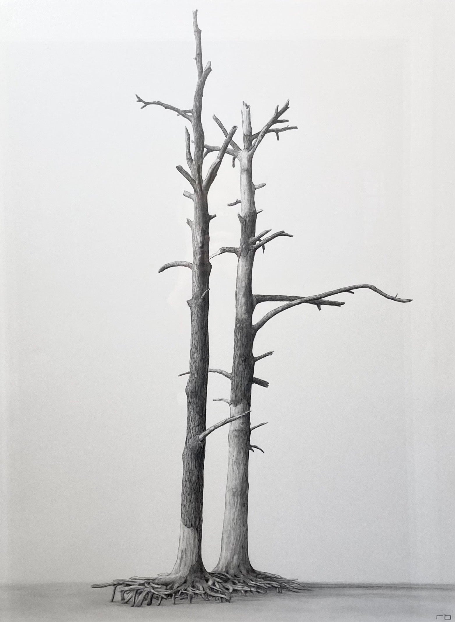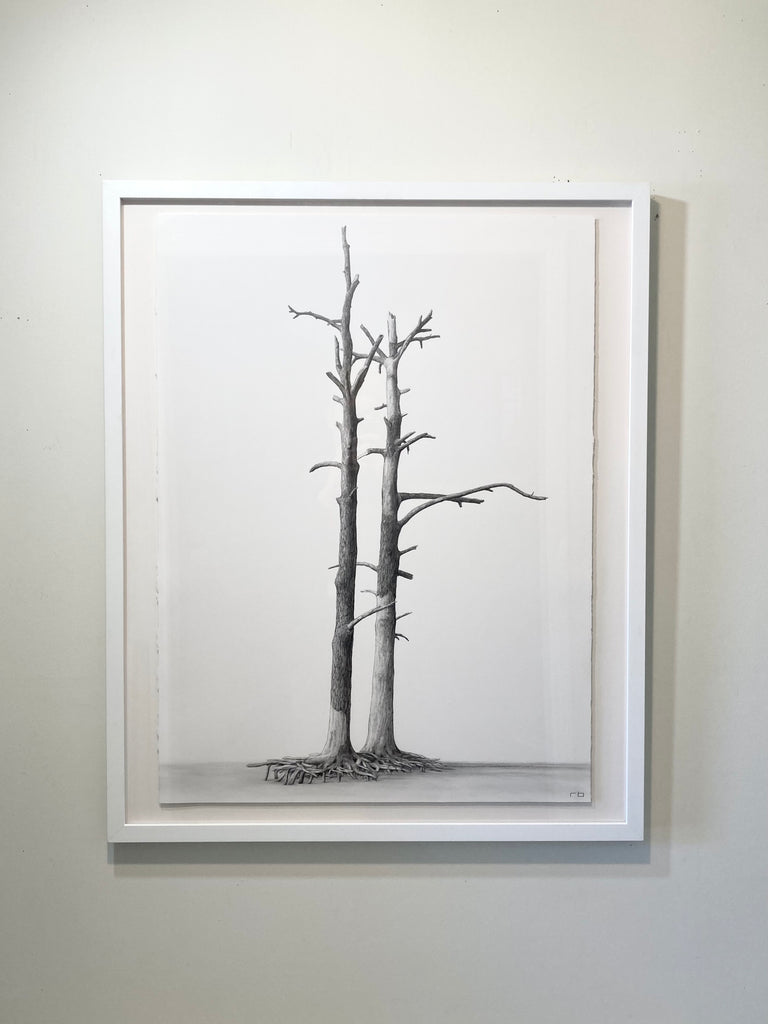 graphite on arches paper, floated on white mat in white frame