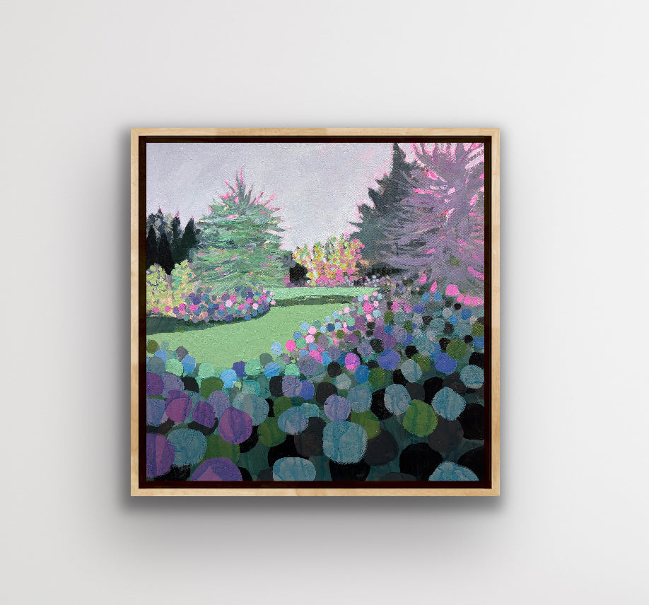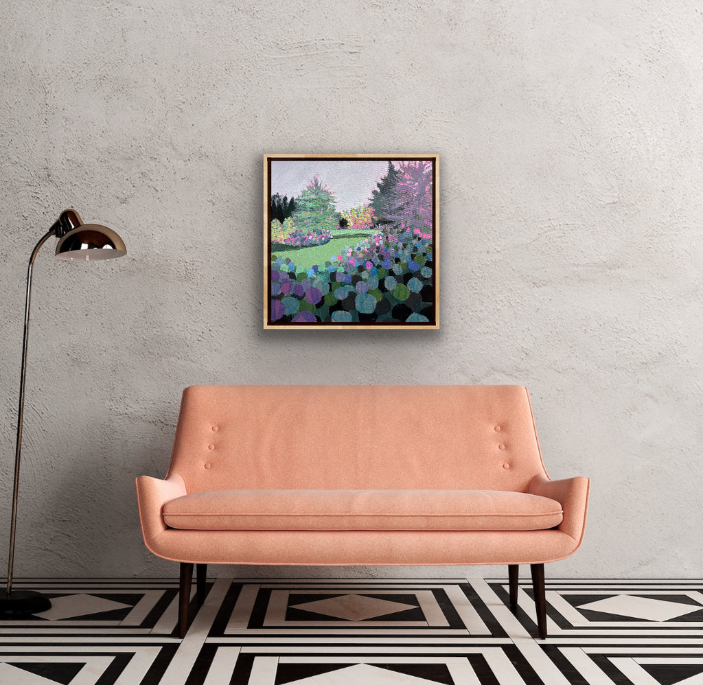 acrylic on gallery wrapped canvas, in gold leaf painted frame