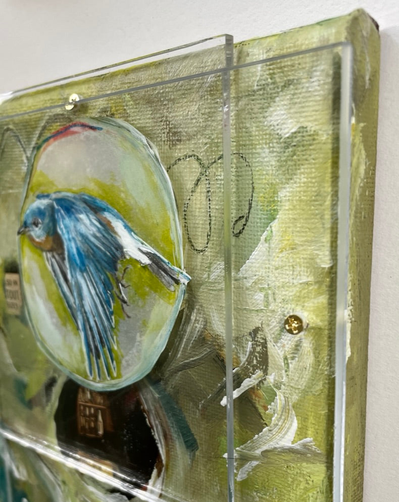 A lifelong artist, I make art because coming up with an idea is what gets me out of bed in the morning and into my studio, mercifully located in my home. So much of what I love in life is at home- my pets inside and wildlife out, nature pouring through the windows, comfortably cluttered rooms full of books and art, the forest surrounding me. My art originates with that early morning idea, a daily walk in the woods, the imagery around me. The deep connection to my surroundings is reflected in the art I make, even using pages of books in my art and the book itself as the canvas with the animals love as the subject. Animal and landscape renderings in mixed media, storytelling dioramas and large works on canvas all have a similar feel of natural wonder.