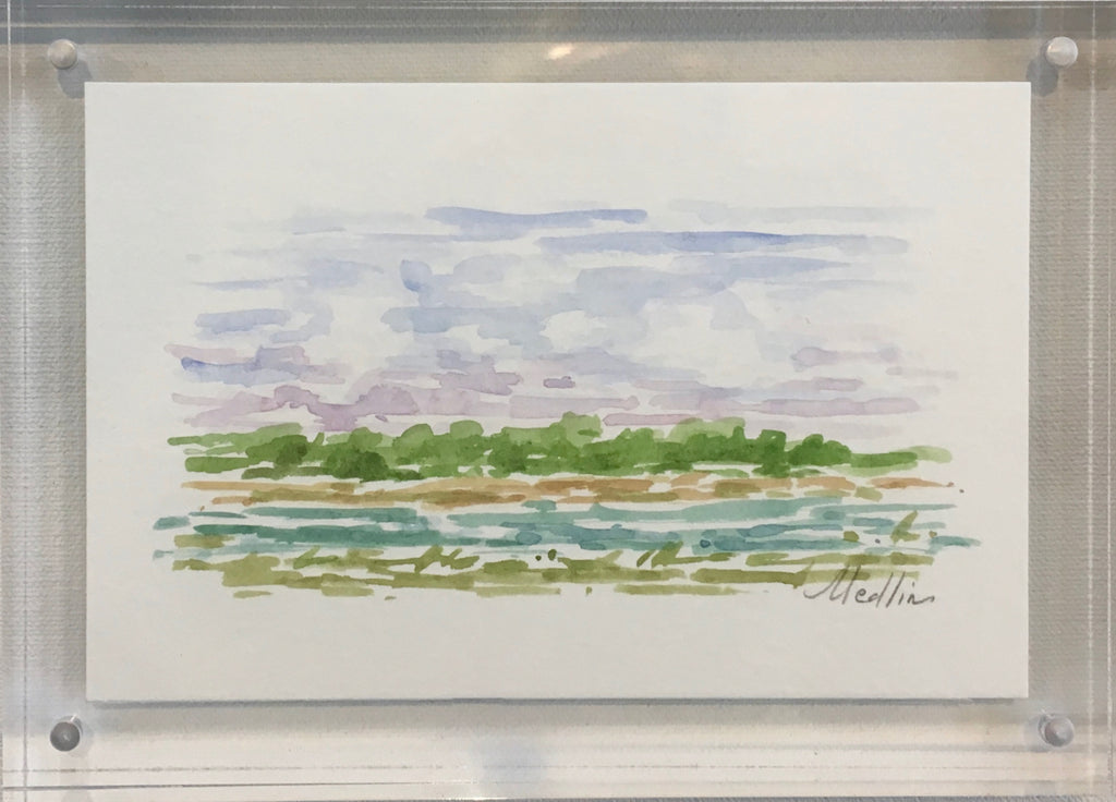 watercolor on watercolor paper, framed in lucite frame