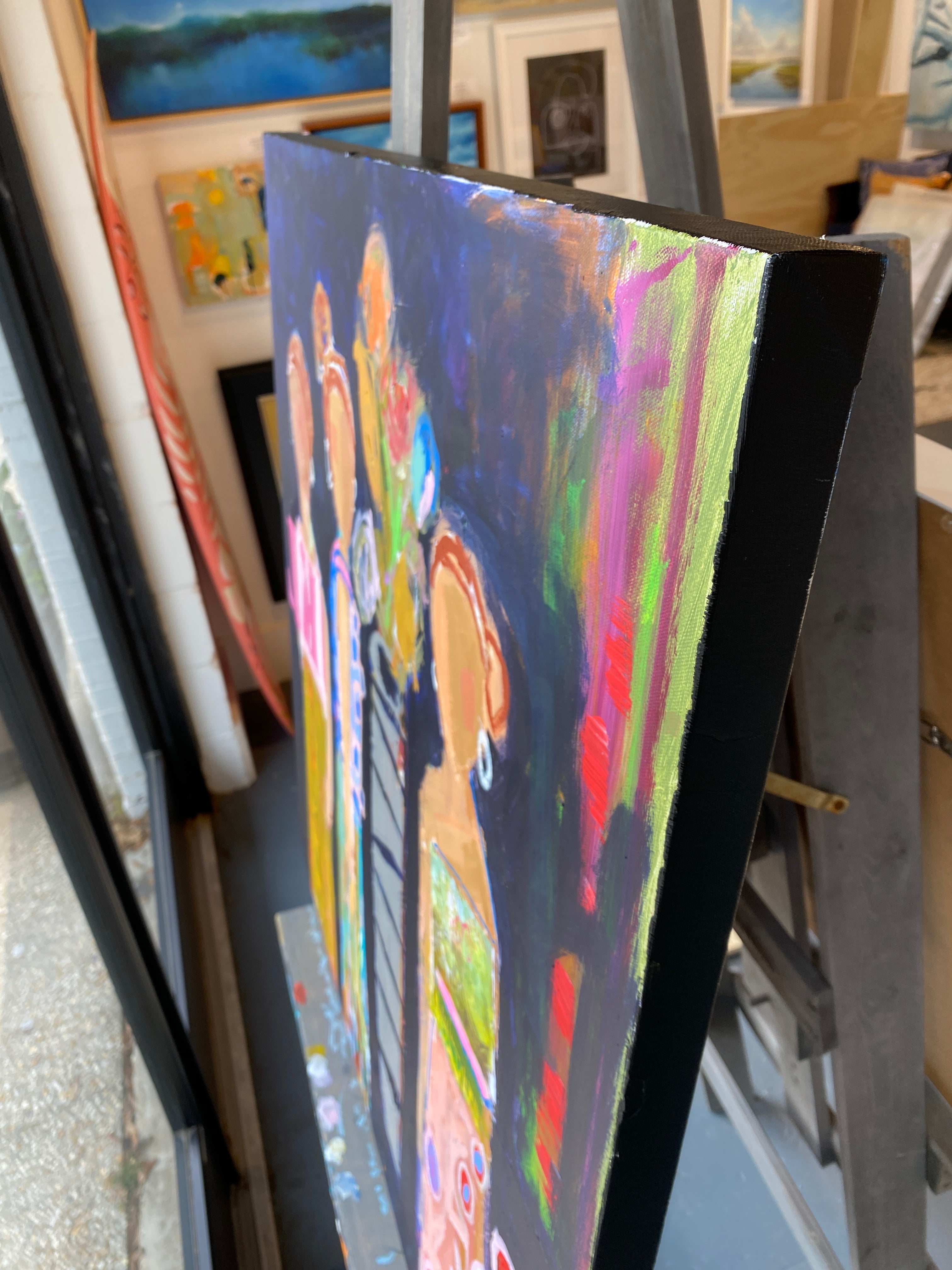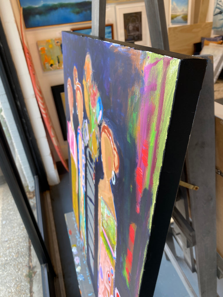Page Morris picked up a paintbrush in third grade and never looked back. Largely self-taught, her client list reaches as far as Canada and includes syndicated columnist Kathleen Parker. Galleries representing her work include: Verve and Over the Mantle in Columbia, SC; Grand Bohemian Gallery in Charleston, SC and One Kings Lane. "My subject matter is women who are feminine, colorful, playful, strong, and beautiful. I use paper, pencil, markers, oil sticks, and paint to achieve a multi-dimensional look. I love texture because the viewers see even more when they stop to take a second look. I adhere to a rigid schedule of painting each day. Creativity only happens if I'm hard at work in my studio. I love what I do and hope my viewers can see that. It's a joyous experience to pick up a paintbrush. It's what I do and what I am."