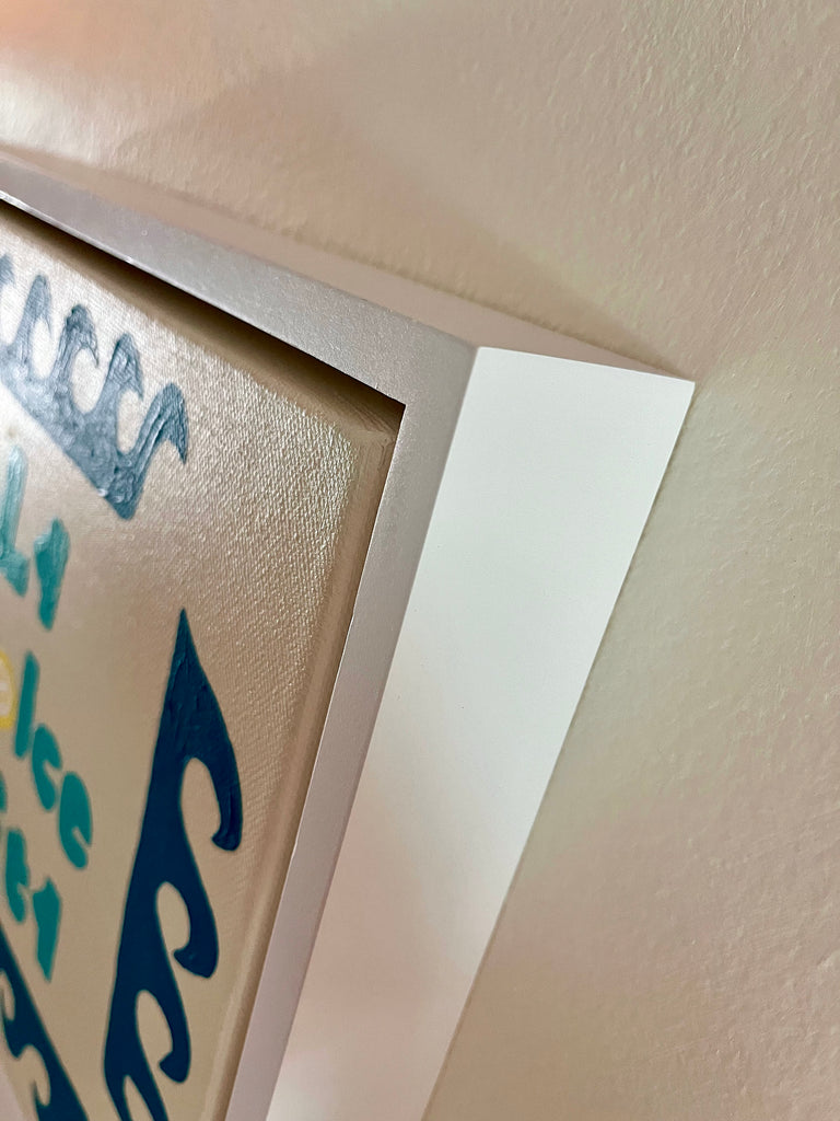 acrylic on gallery wrapped canvas, in white wood floater frame