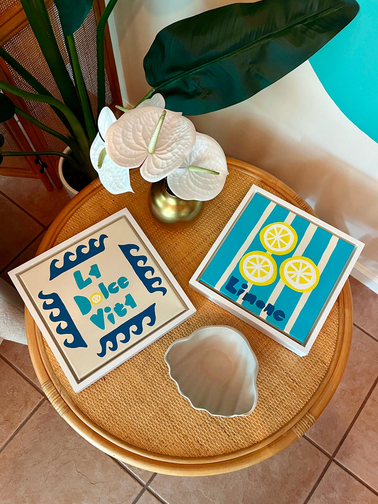 Totally tropical Lisa Kaw shares her love for nature and travel through her vibrant paintings. From her South Florida jungalow, she uses acrylic on canvas to transform the beauty around her into tangible one of a kind treasures. A minimalist at heart, Lisa thrives best when surrounded only by the blues and greens of the natural world and the curious melody of the rainforest chatter. Bali and the Big Island of Hawaii are her most sacred visited places. With a playful palette and a joyful spirit, Lisa Kaw creates work that simply and purely communicates the wonder of our natural world.