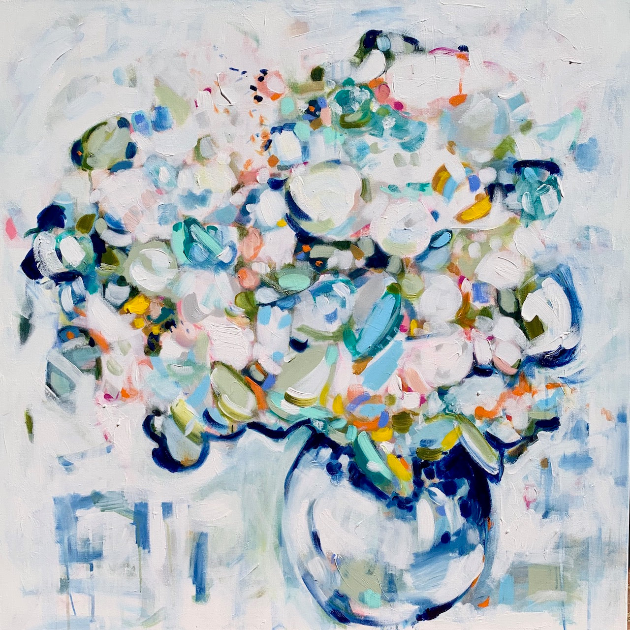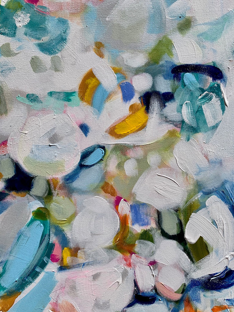 Michele James is an abstract painter known for her large works on canvas. She is inspired by color and movement and uses strong brushstroke and varied marks on neutral canvases with pops of bold colors. She paints with acrylics , and uses chalk, oil pastels and pencil to vary the texture and medium of her works. She is influenced by the colors in nature, the lightness and space of the sky, and the texture and depth of landscapes. “I love to make people happy and for a client to add my painting to their home is wonderful compliment” Michele received a BFA in fine art and art history at Hunter College in New York, NY with a concentration in studio painting. Michele paints out of her home studio in Atlanta where she lives with her husband and three kids.
