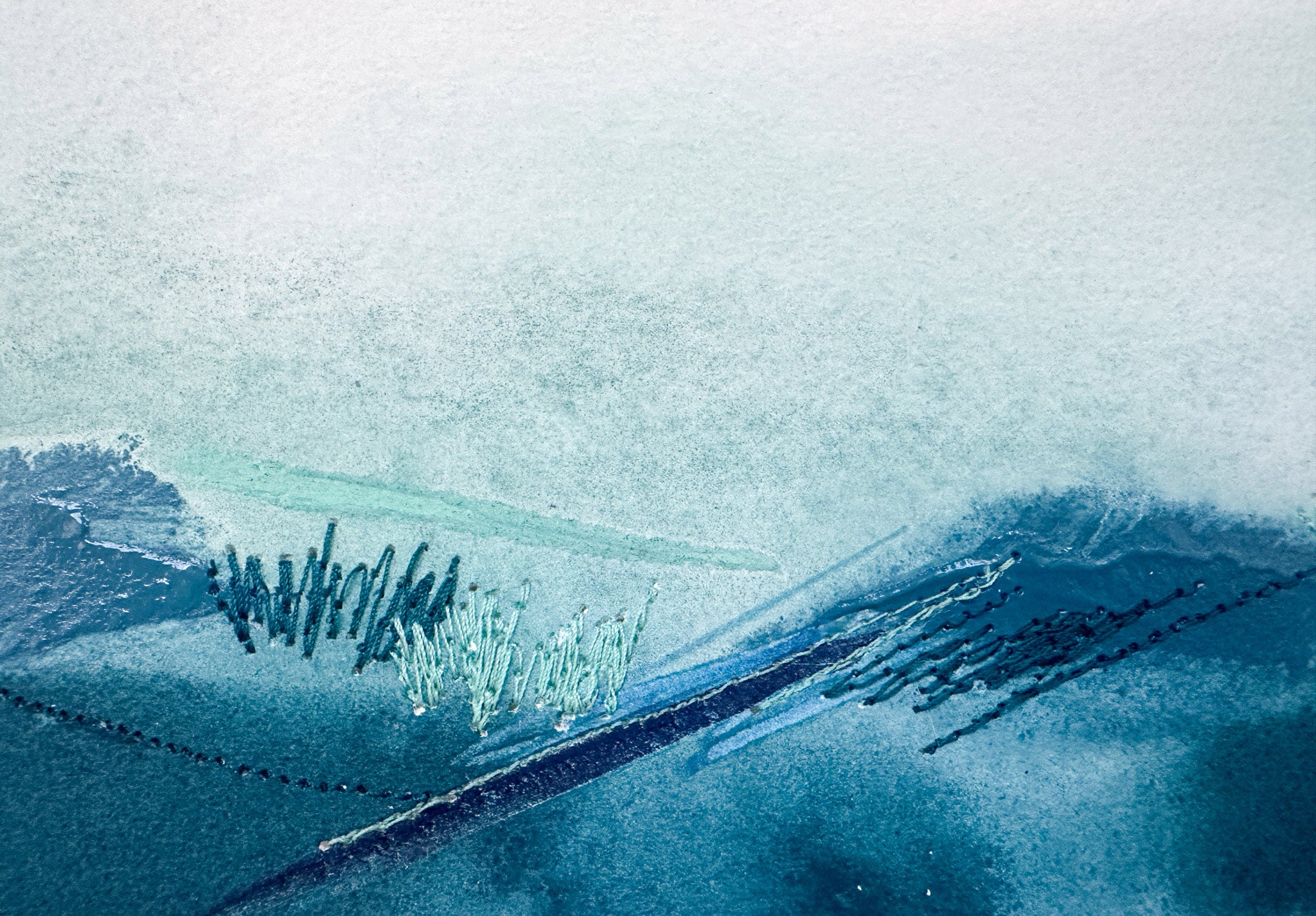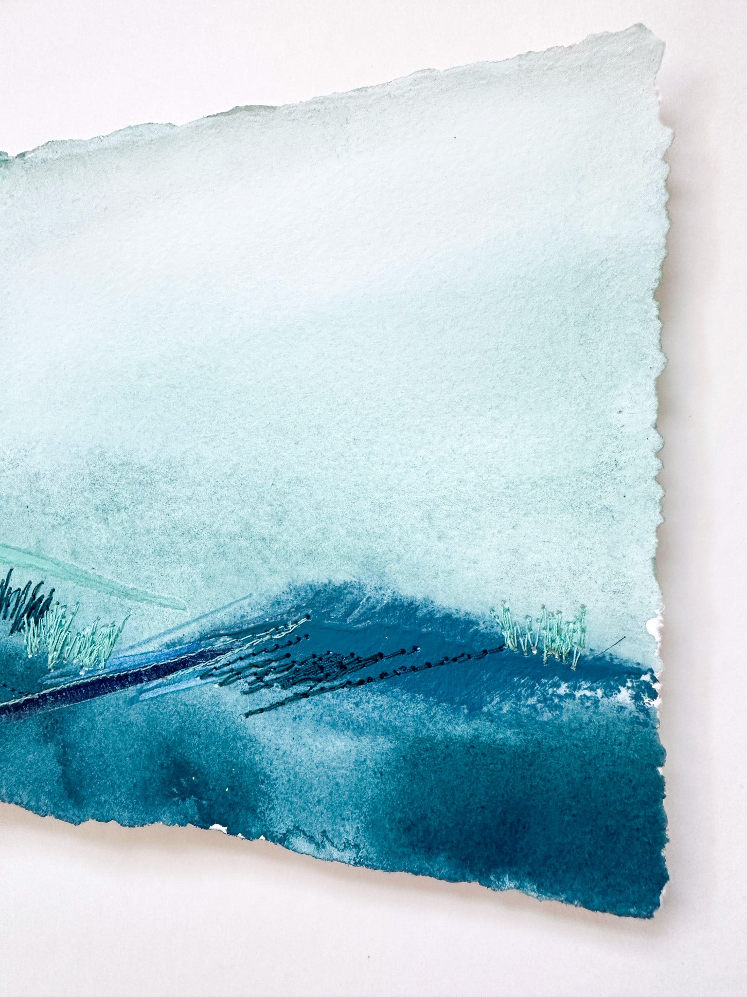 Deeann has a BFA from Memphis College of Art with a painting emphasis and has always been drawn to mixed media and collage. She took several fiber arts classes in college where she learned machine embroidery and sewing techniques. When she began working abstract a few years later, she combined these two techniques and found her own creative voice. She uses a sewing technique called free-motion machine embroidery on top of painted papers and incorporates those papers as collage.The stitched lines sit on top of fluid ink washes, colliding with bold paint scrapes and embellishing each piece with texture and delicate line, like veins running through the painting. “I am drawn to the tactility that the embroidery adds to the work both aesthetically and conceptually. The nature of thread is strong but intricate; it has a sort of permanence with the appearance of fragility.” Deeann has been in Nashville since 2018 and paints full time in her home studio with her two young daughters nearby.