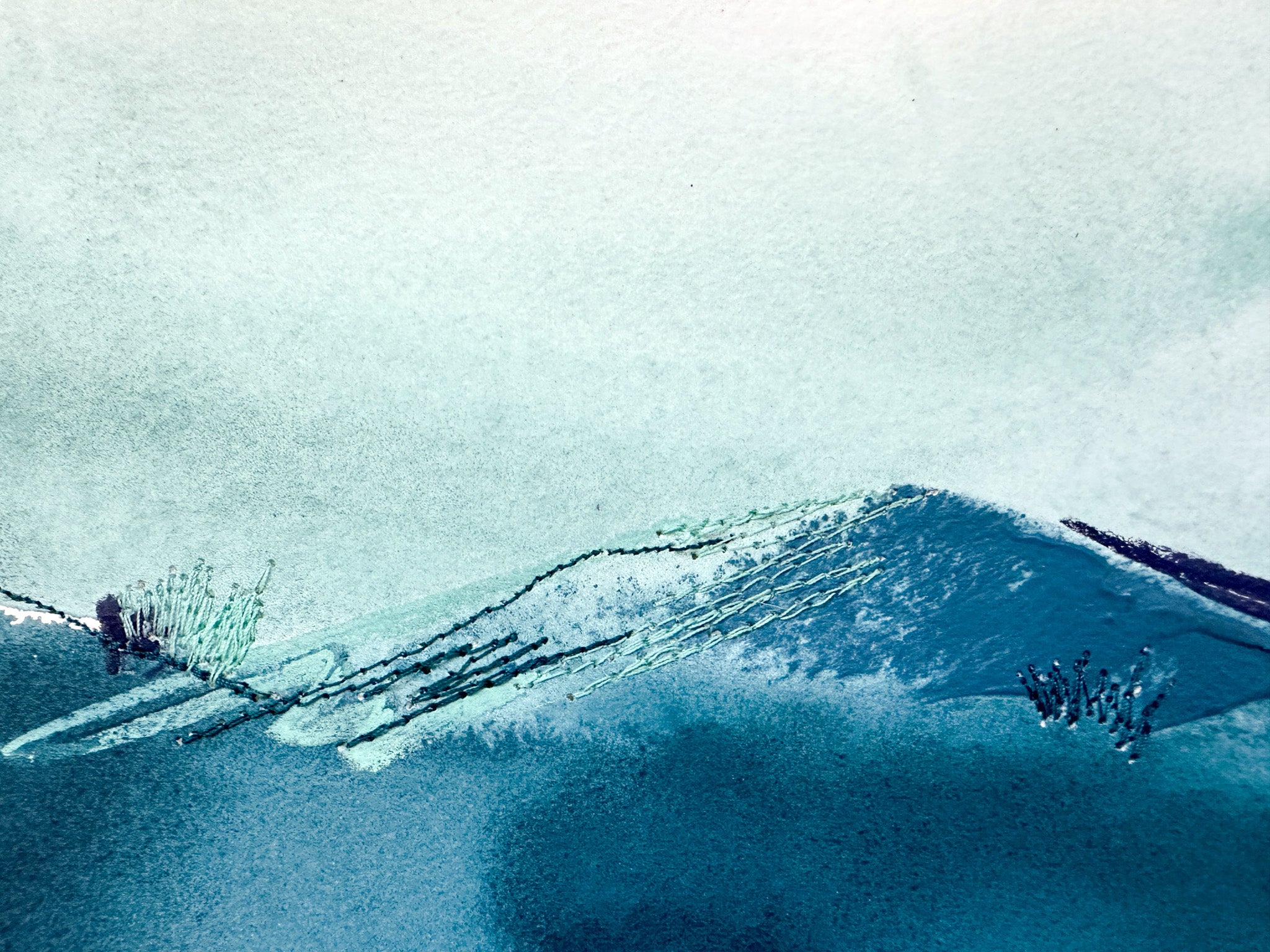 Deeann has a BFA from Memphis College of Art with a painting emphasis and has always been drawn to mixed media and collage. She took several fiber arts classes in college where she learned machine embroidery and sewing techniques. When she began working abstract a few years later, she combined these two techniques and found her own creative voice. She uses a sewing technique called free-motion machine embroidery on top of painted papers and incorporates those papers as collage.The stitched lines sit on top of fluid ink washes, colliding with bold paint scrapes and embellishing each piece with texture and delicate line, like veins running through the painting. “I am drawn to the tactility that the embroidery adds to the work both aesthetically and conceptually. The nature of thread is strong but intricate; it has a sort of permanence with the appearance of fragility.” Deeann has been in Nashville since 2018 and paints full time in her home studio with her two young daughters nearby.