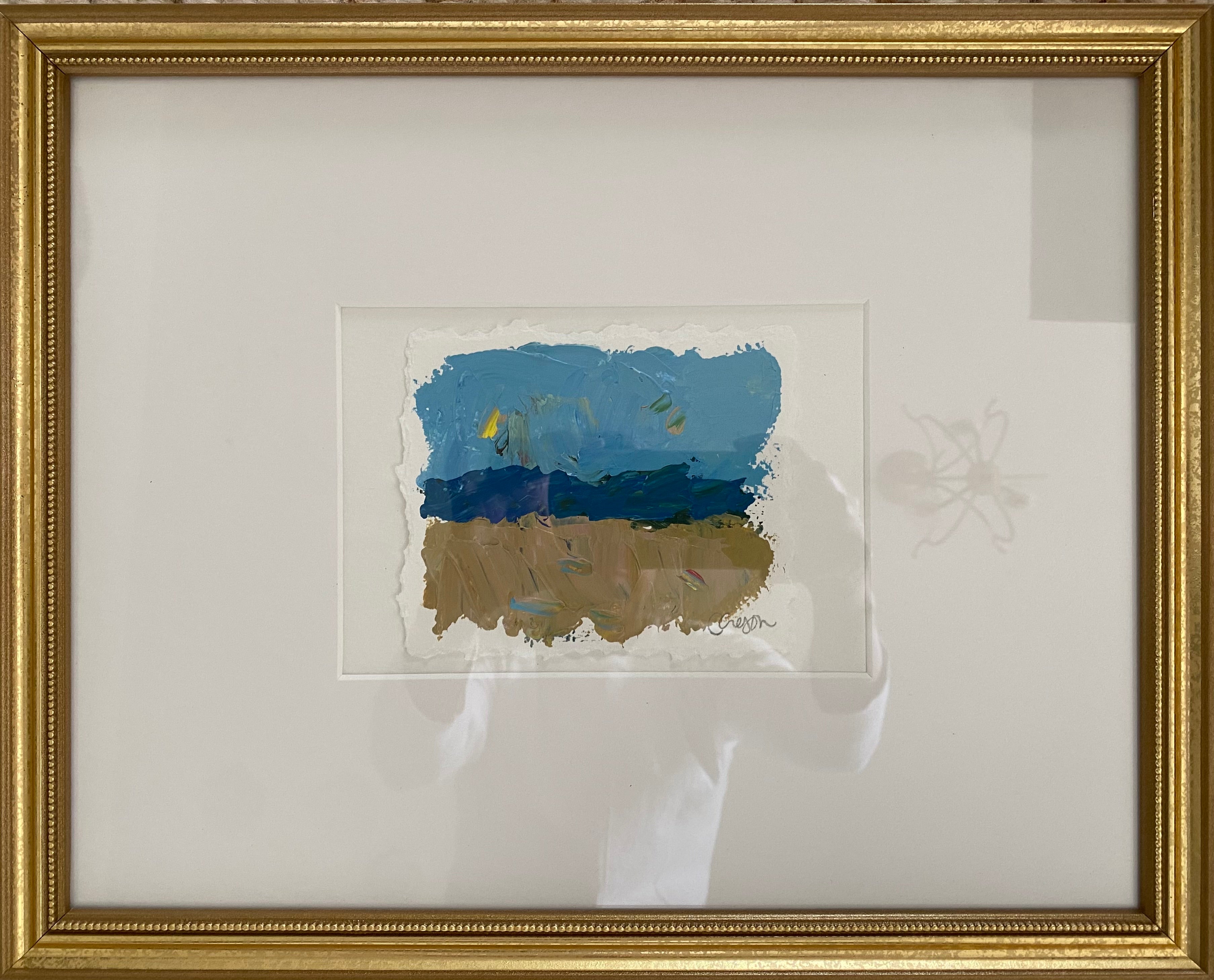acrylic on cold pressed paper with deckled edge, floating in white mat, in gold frame