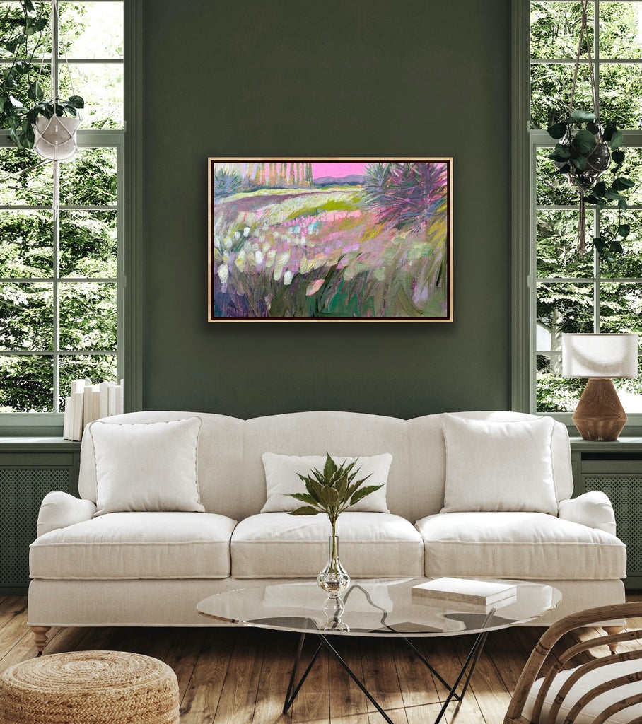 acrylic on gallery wrapped canvas, in gold leaf frame