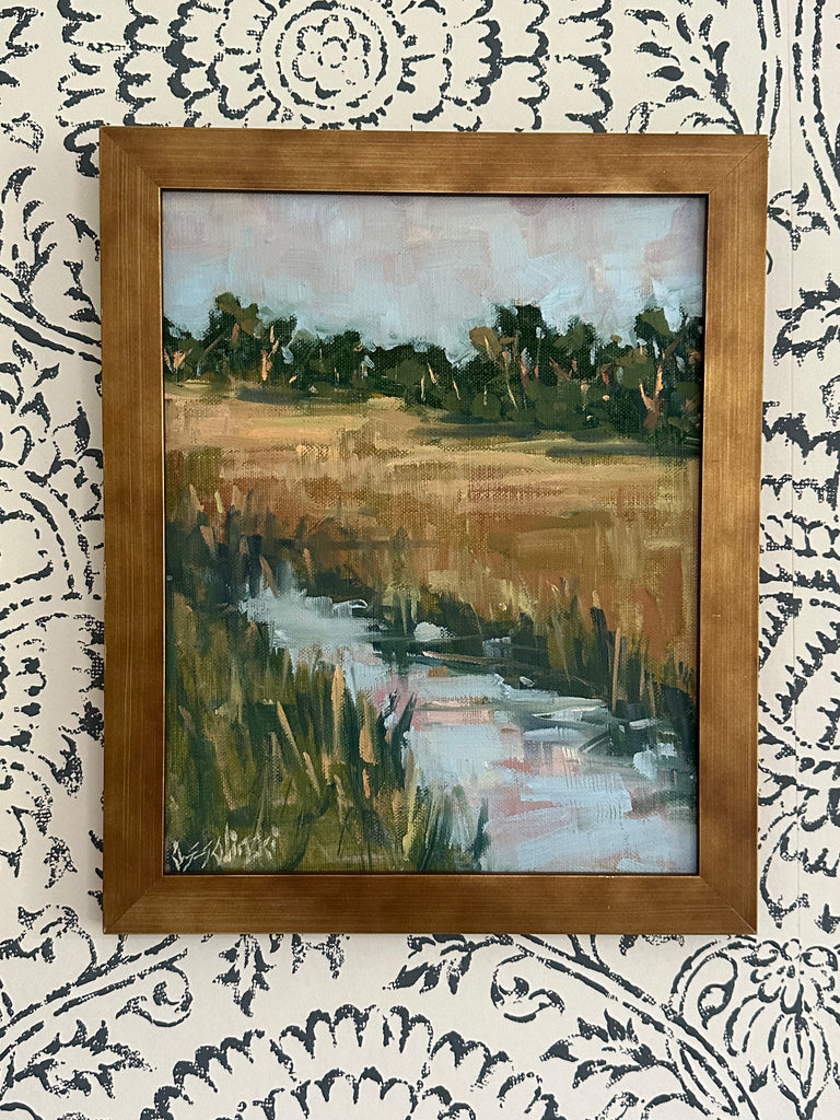 oil on linen board, framed in gold matte frame