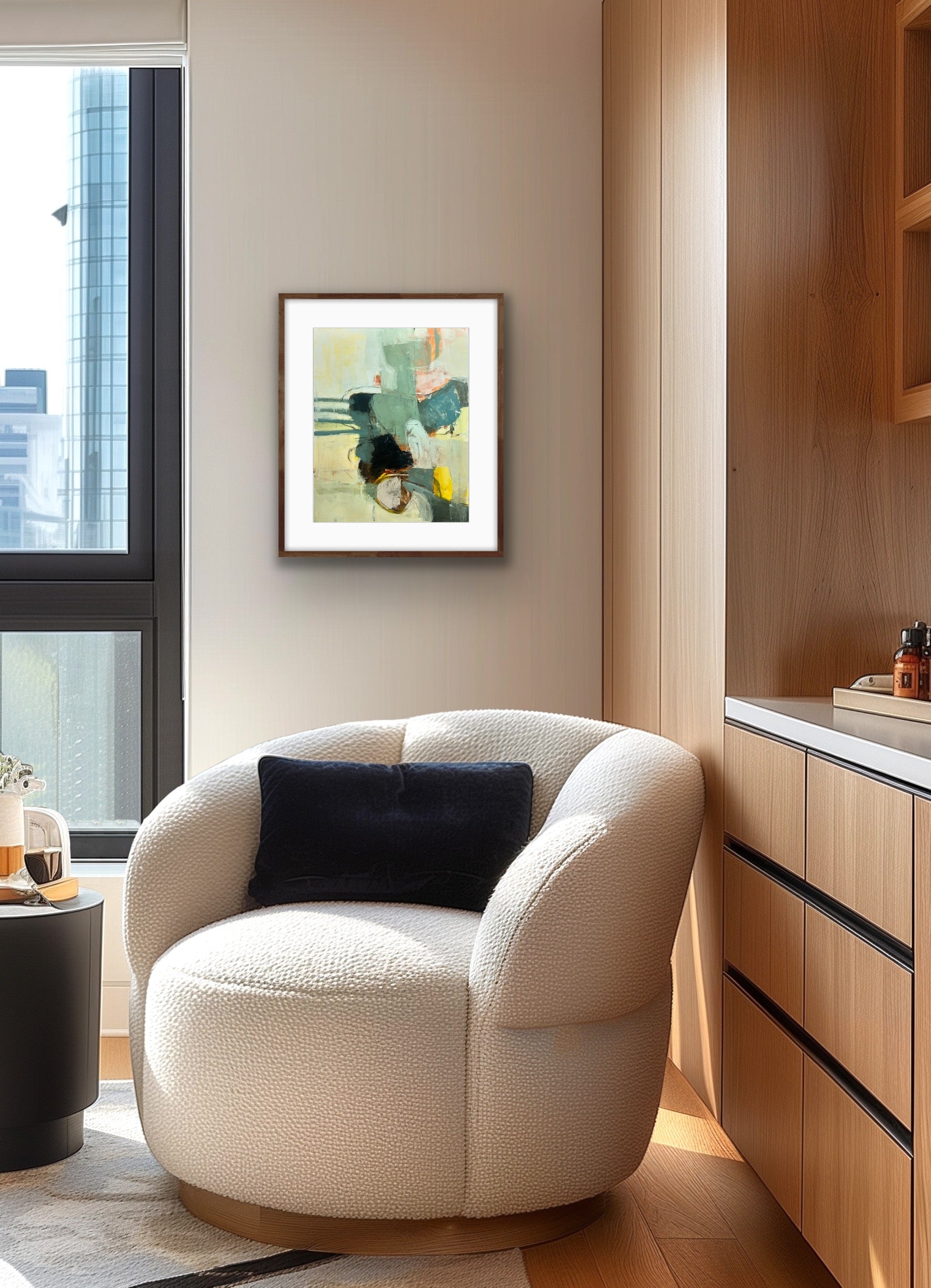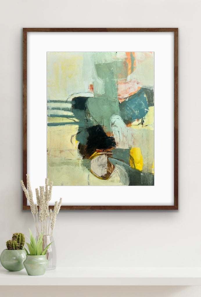 I find ultimate freedom in abstract expressionism and as such, I’m in search of the best way to convey who I am at the moment of creating. It is not to say it is a free-for-all; there is still structure within. I implement the same principles that realist painters employ with the absence of representation: composition, hierarchy, variety, juxtaposition are vital to a successful painting. But I do not limit myself to one medium or the other. I work in oil, acrylics and gouache and depending on what I’m exploring at the time I will choose one or more to express it. I also explore through a combination of paint and collage. It is through all of these various methods and mediums that I am able to share my fullest expression of self and my authenticity. My paintings ultimately are self portraits that are created from both past experiences and also future hopes and dreams. It is my goal to invoke a feeling for the viewer. When it does I have succeede