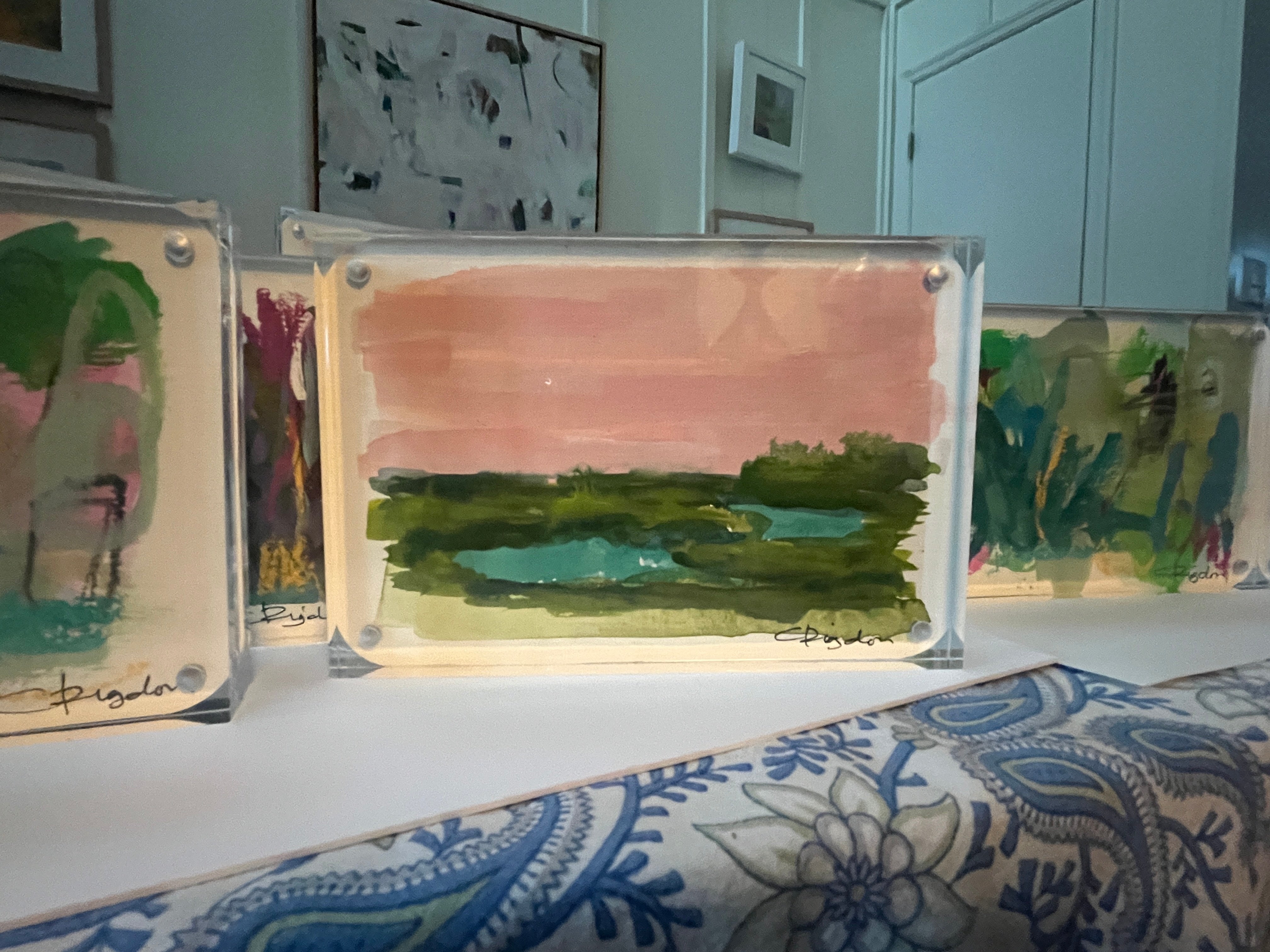 I find ultimate freedom in abstract expressionism and as such, I’m in search of the best way to convey who I am at the moment of creating. It is not to say it is a free-for-all; there is still structure within. I implement the same principles that realist painters employ with the absence of representation: composition, hierarchy, variety, juxtaposition are vital to a successful painting. But I do not limit myself to one medium or the other. I work in oil, acrylics and gouache and depending on what I’m exploring at the time I will choose one or more to express it. I also explore through a combination of paint and collage. It is through all of these various methods and mediums that I am able to share my fullest expression of self and my authenticity. My paintings ultimately are self portraits that are created from both past experiences and also future hopes and dreams. It is my goal to invoke a feeling for the viewer. When it does I have succeede